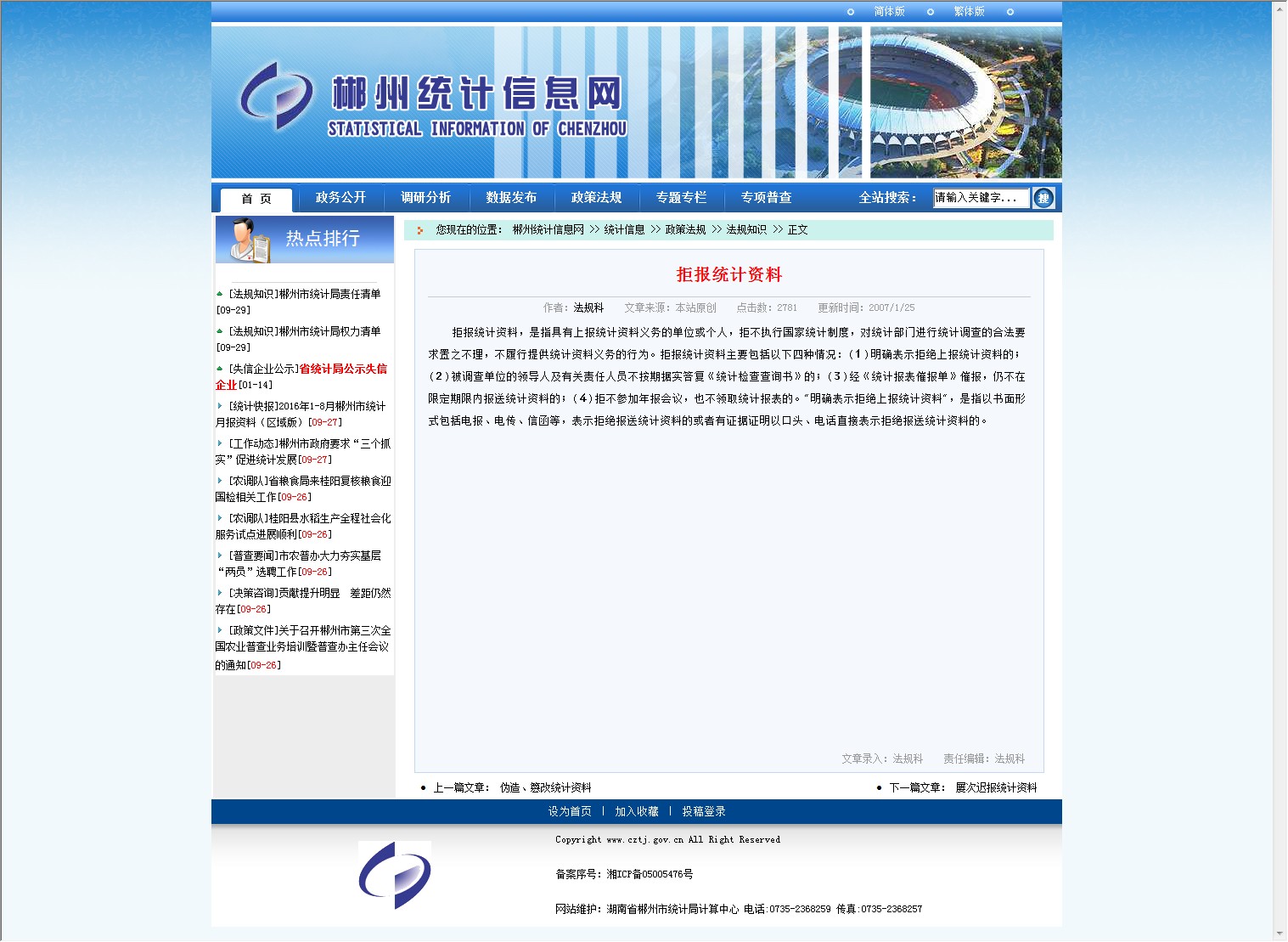 拒报统计资料,是指具有上报统计资料义务的单位或个人,拒不执行国家统计制度,对统计部门进行统计调查的合法要求置之不理,不履行提供统计资料义务的行为。拒报统计资料主要包括以下四种情况:(1)明确表示拒绝上报统计资料的;(2)被调查单位的领导人及有关责任人员不按期据实答复《统计检查查询书》的;(3)经《统计报表催报单》催报,仍不在限定期限内报送统计资料的;(4)拒不参加年报会议,也不领取统计报表的。"明确表示拒绝上报统计资料",是指以书面形式包括电报、电传、信函等,表示拒绝报送统计资料的或者有证据证明以口头、电话直接表示拒绝报送统计资料的。