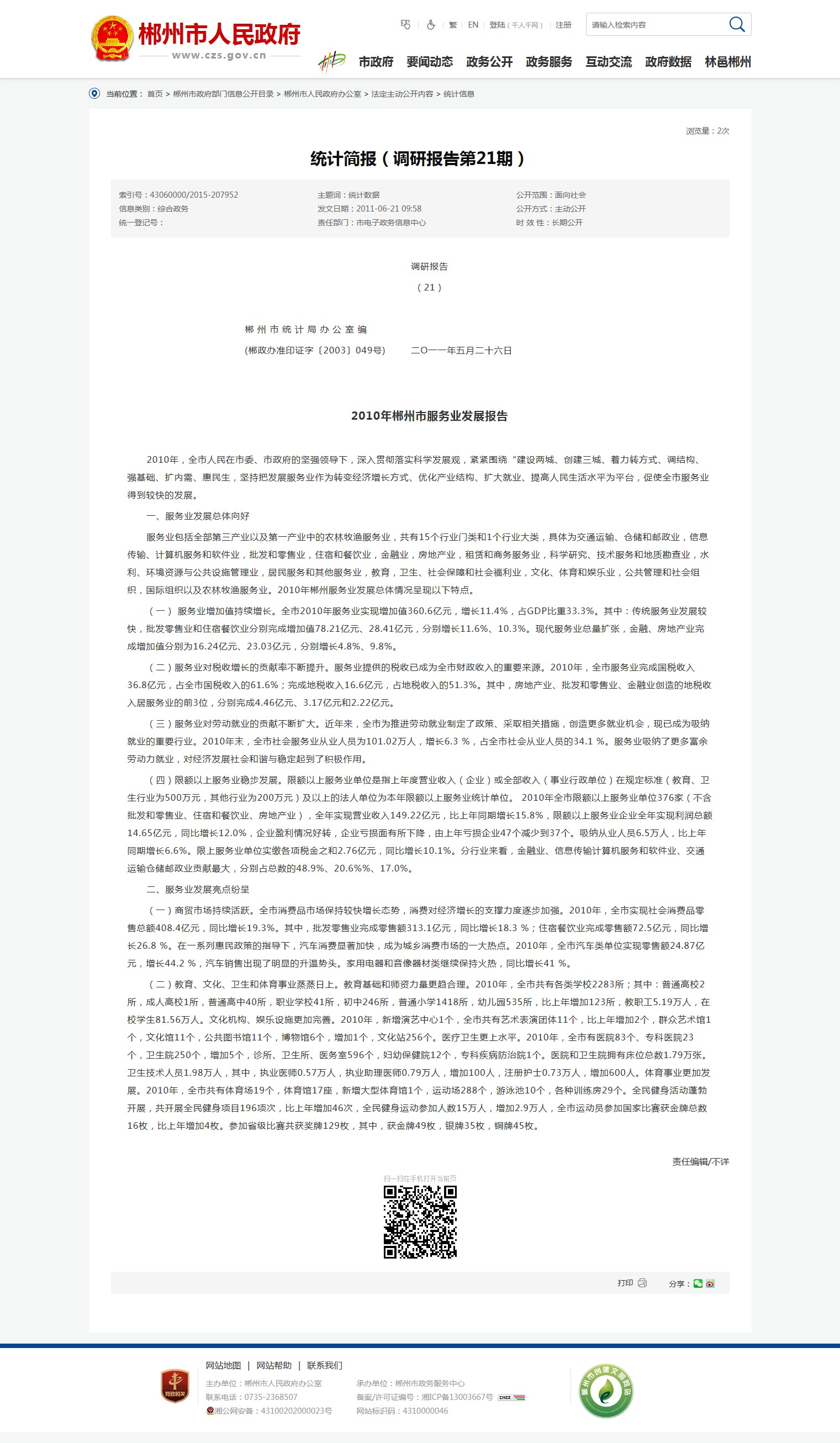 2010年郴州市服务业发展报告