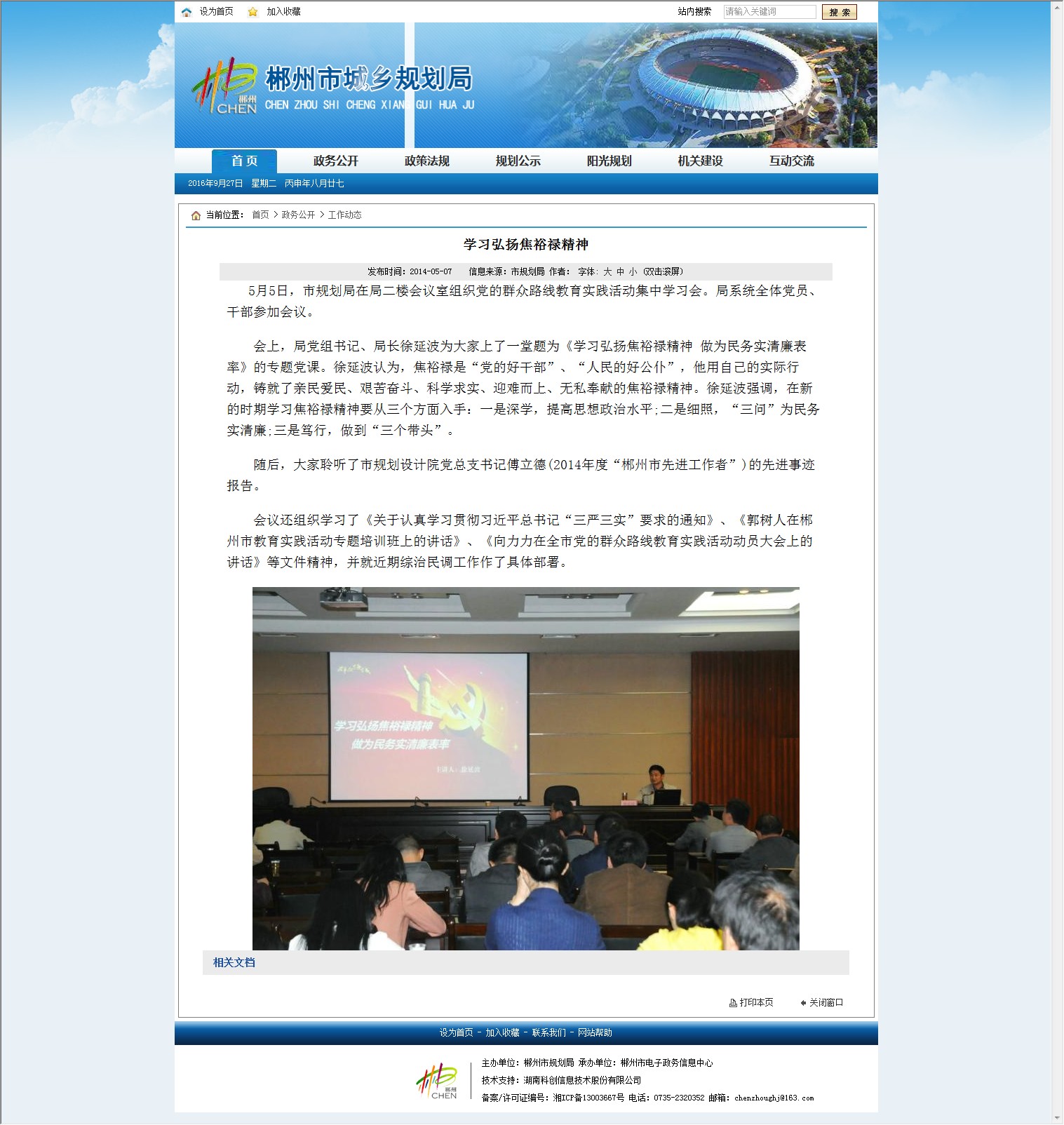 随后,大家聆听了市规划设计院党总支书记傅立德(2014年度“郴州市先进工作者”)的先进事迹报告。