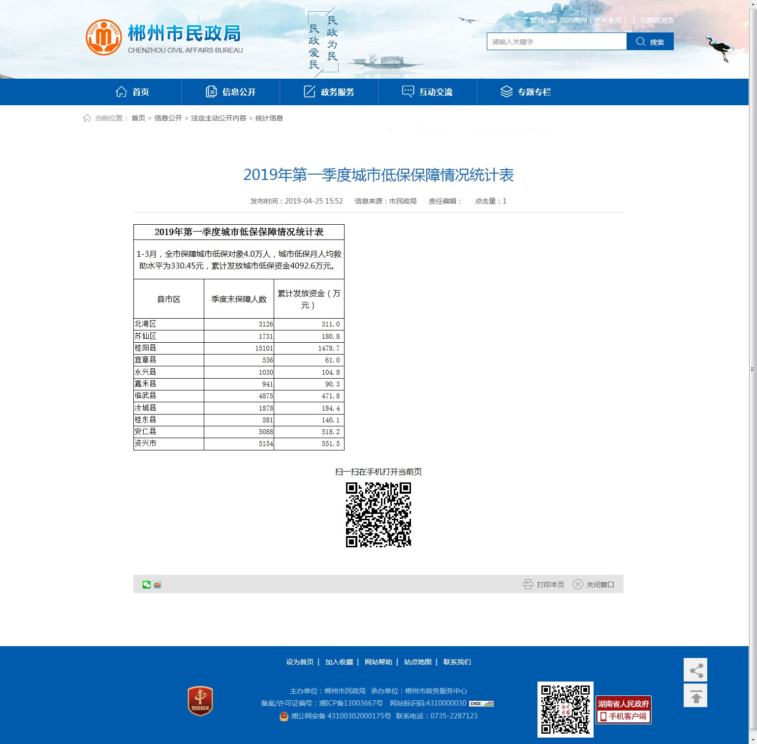 | 2019年第一季度城市低保保障情况统计表 | ||