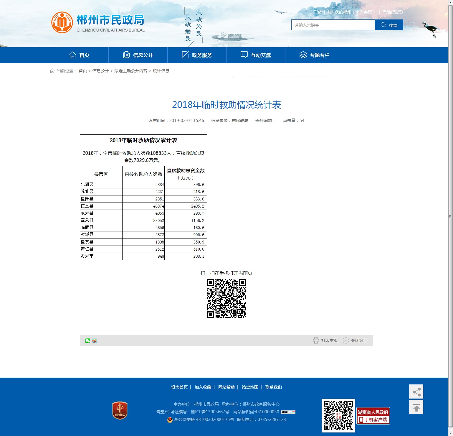 | 2018年,全市临时救助总人次数108833人,直接救助总资金数7029.6万元。 | ||