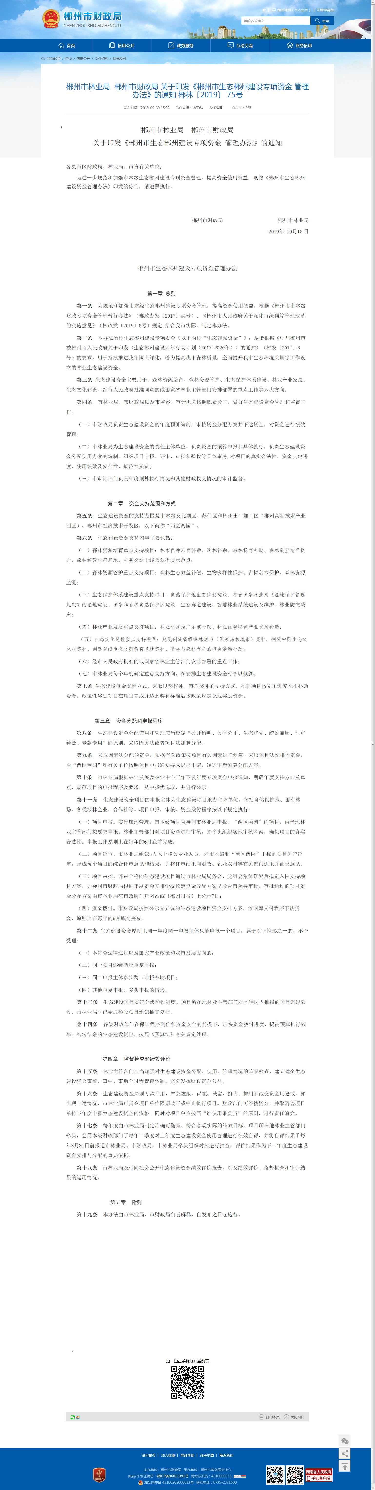 关于印发《郴州市生态郴州建设专项资金 管理办法》的通知