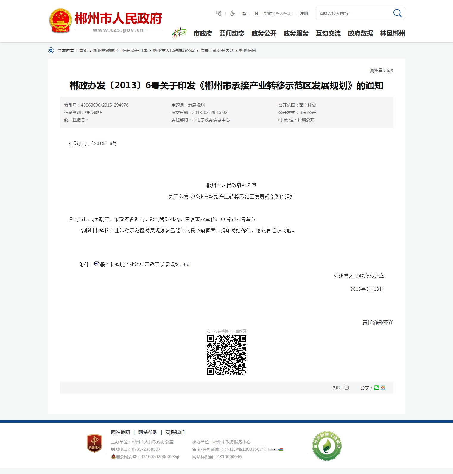 关于印发《郴州市承接产业转移示范区发展规划》的通知