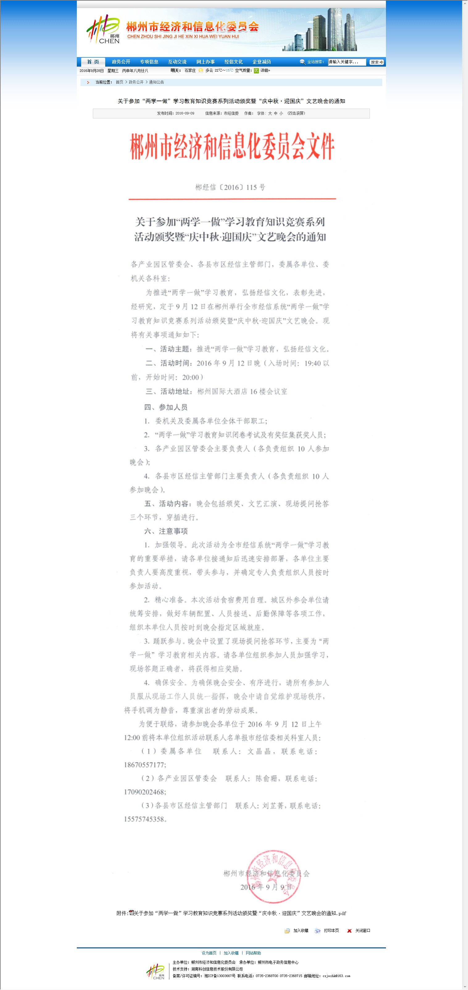 发文字号:郴经信[2016]115号