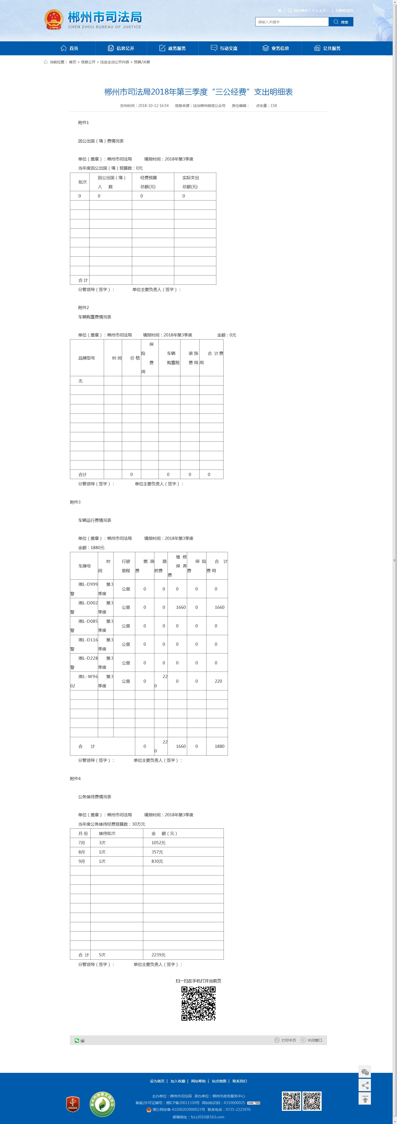 单位(盖章):郴州市司法局 填报时间:2018年第3季度 金额:0元