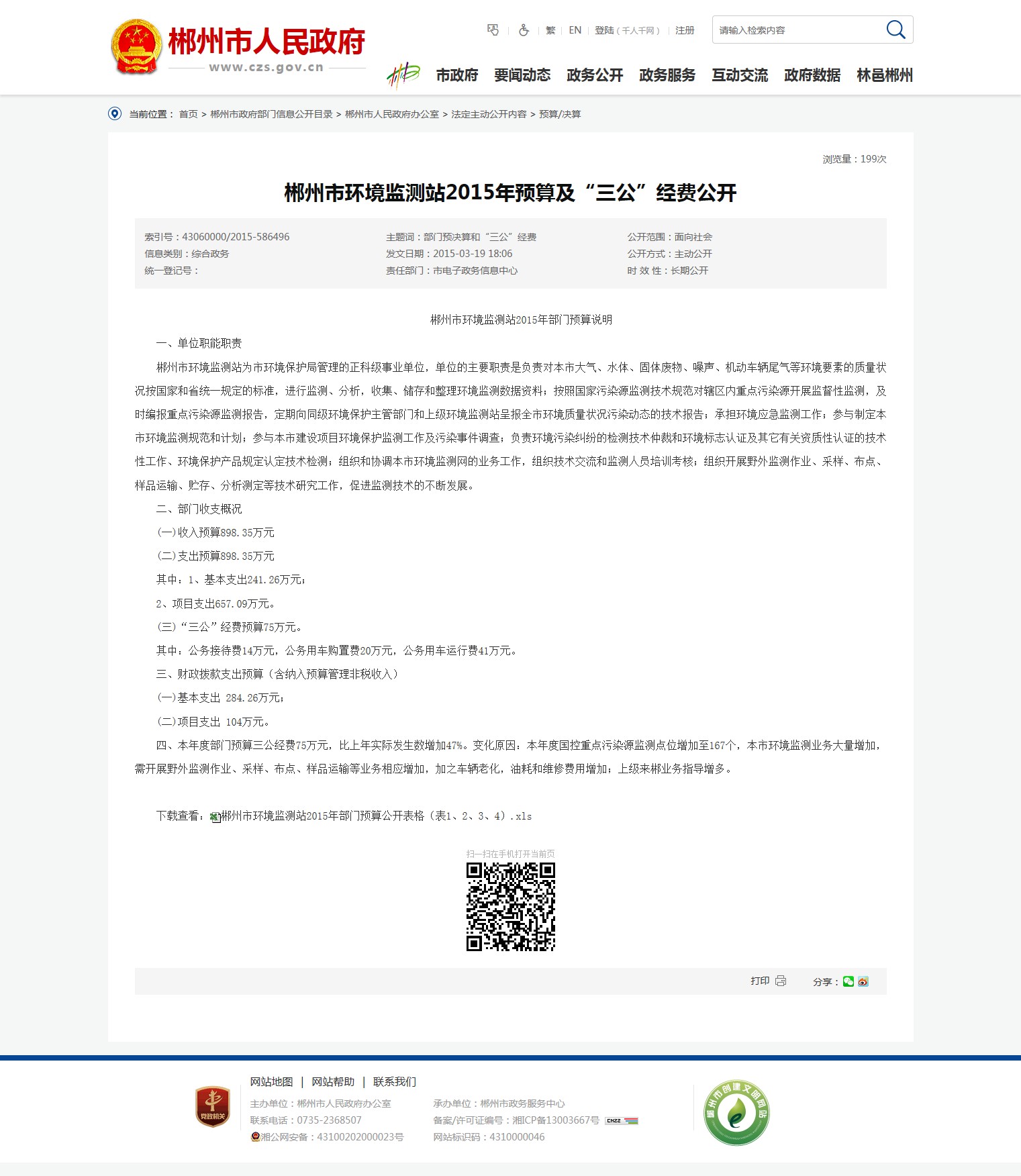 郴州市环境监测站2015年部门预算说明