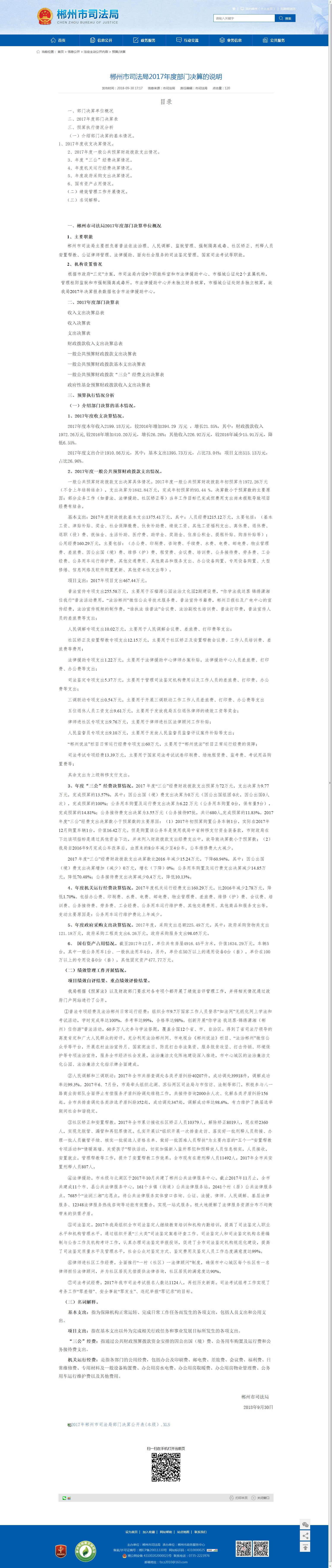 一、郴州市司法局2017年度部门决算单位概况