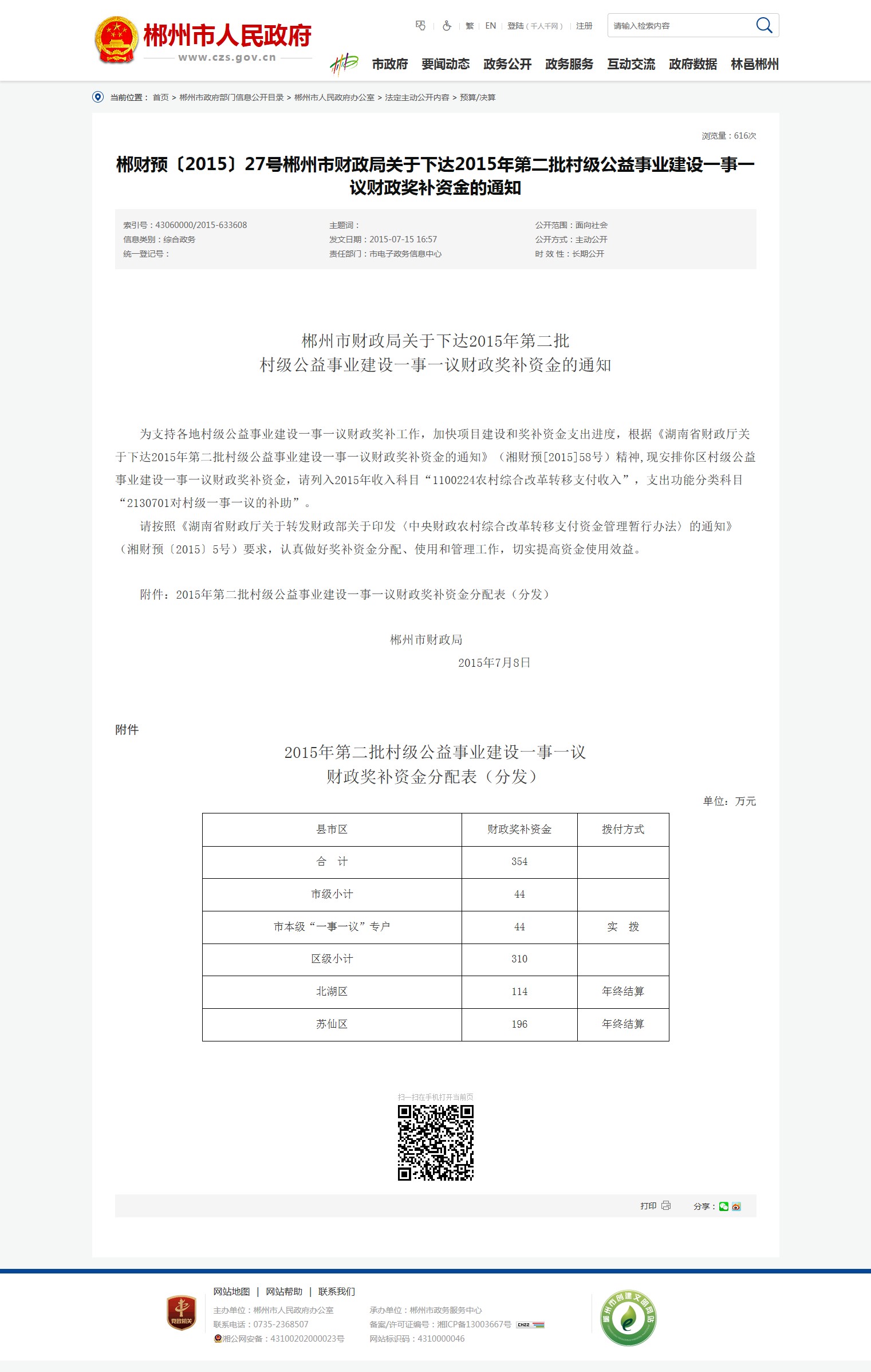 为支持各地村级公益事业建设一事一议财政奖补工作,加快项目建设和奖补资金支出进度,根据《湖南省财政厅关于下达2015年第二批村级公益事业建设一事一议财政奖补资金的通知》(湘财预[2015]58号)精神,现安排你区村级公益事业建设一事一议财政奖补资金,请列入2015年收入科目“1100224农村综合改革转移支付收入”,支出功能分类科目“2130701对村级一事一议的补助”。