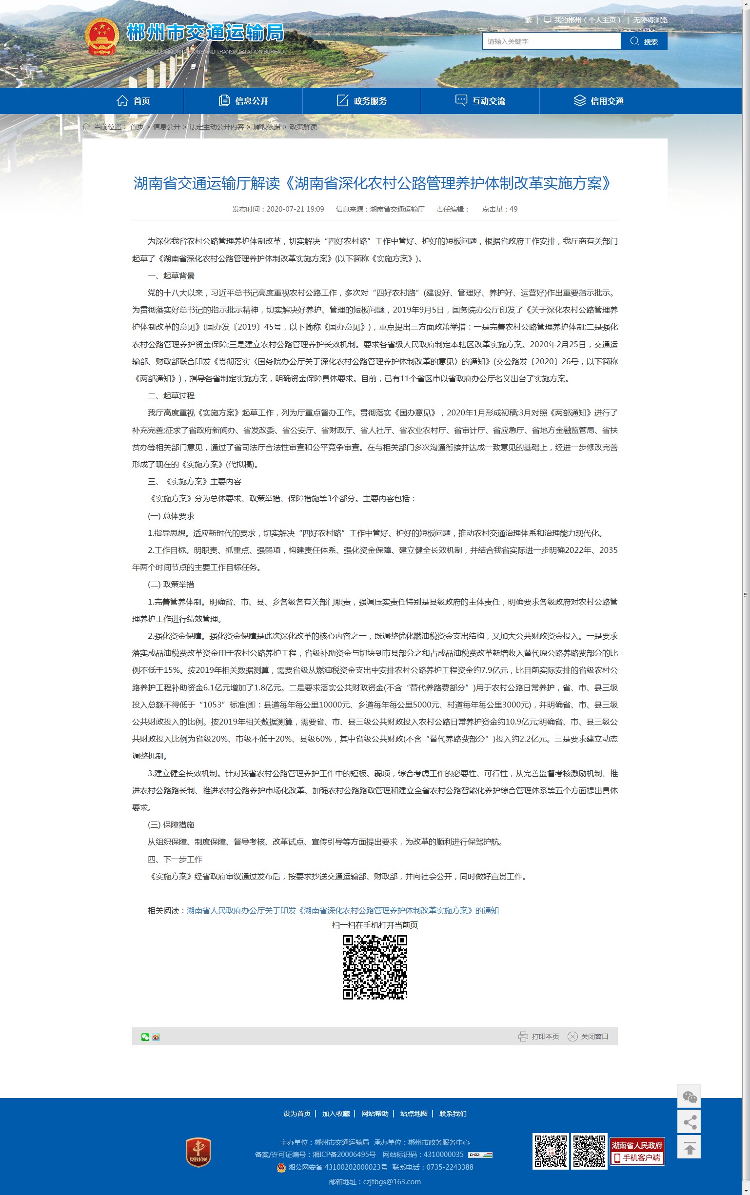 相关阅读:湖南省人民政府办公厅关于印发《湖南省深化农村公路管理养护体制改革实施方案》的通知