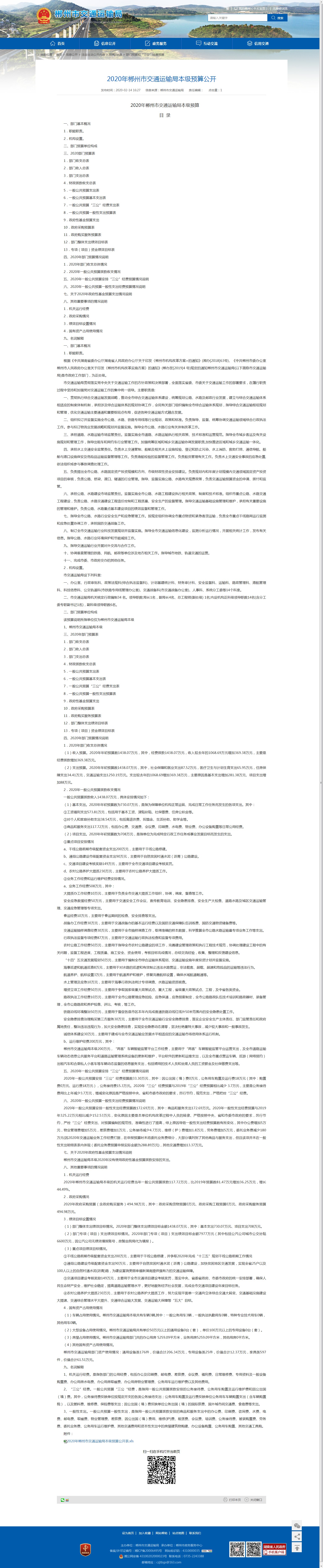 (2)支出预算。2020年年初预算数1438.07万元,其中,社会保障和就业支出87.52万元,医疗卫生与计划生育支出65.95万元,住房保障支出34.41万元,交通运输支出1250.19万元。支出较去年的1068.69增加369.38万元,主要原因是基本支出增加281.38万元、项目支出增加88万元。