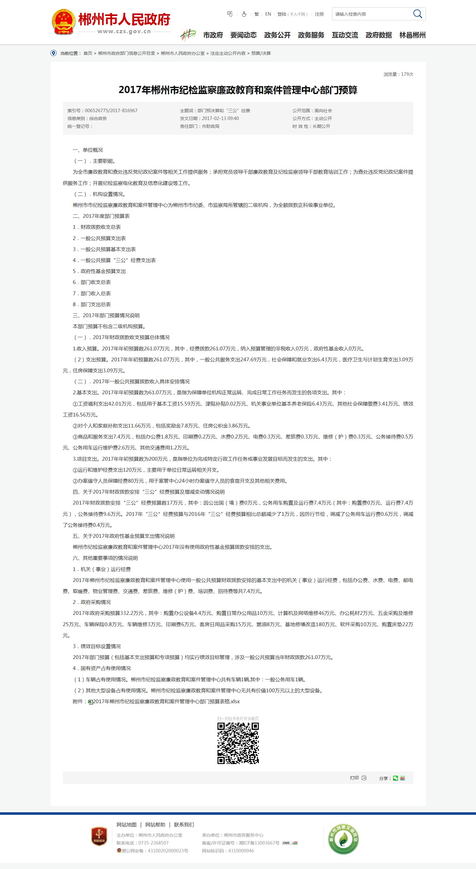 2017年郴州市纪检监察廉政教育和案件管理中心部门预算表格.xlsx
