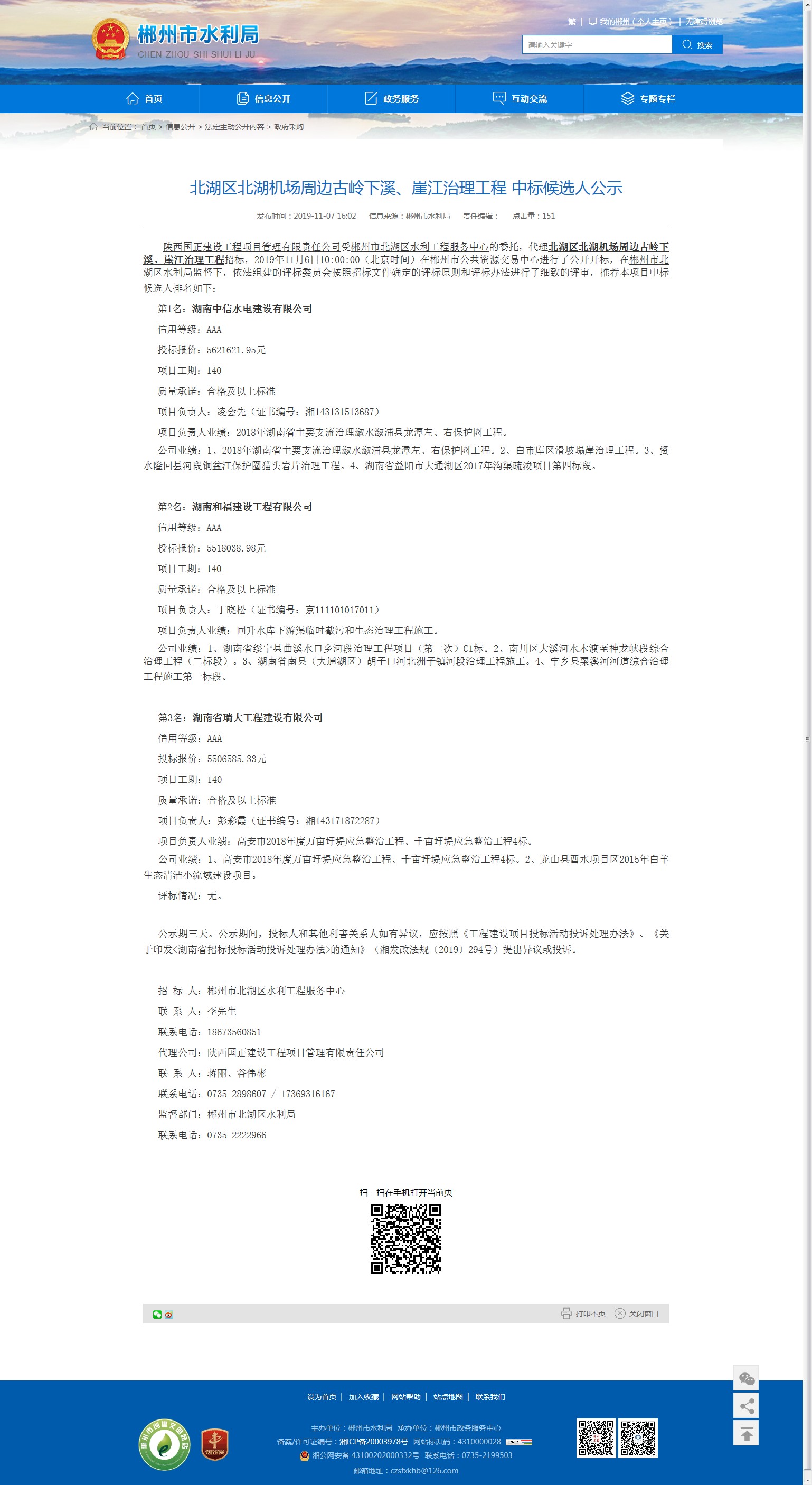 监督部门:郴州市北湖区水利局