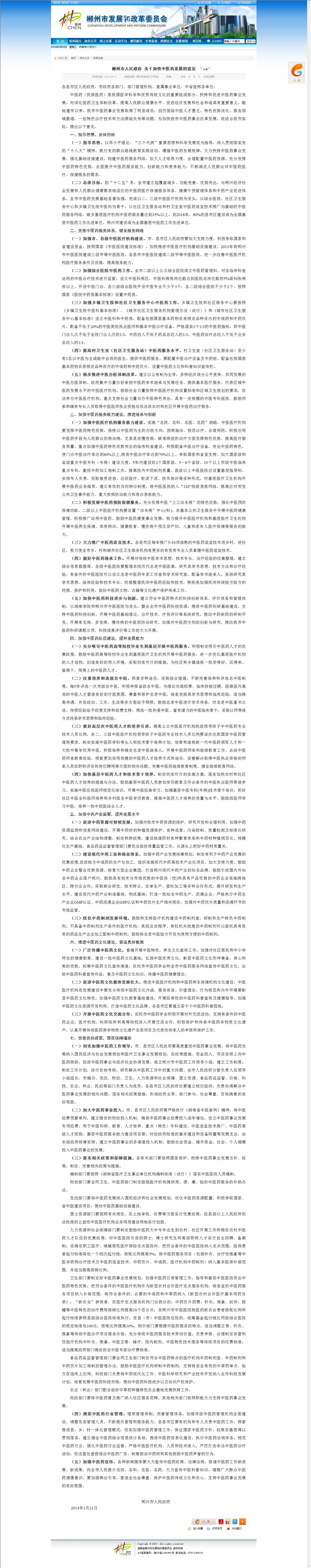 (一)切实加强中医药工作领导。市、县市区人民政府要高度重视中医药事业发展,将中医药发展纳入国民经济与社会发展规划和医疗卫生事业发展规划,在政策措施、资金投入、项目安排上向中医药倾斜,促进中医药事业与经济社会协调发展。成立郴州市中医药工作领导小组,建立工作制度,制定工作计划,进行目标考核,研究解决中医药工作中的重大问题。由市人民政府分管负责人任领导小组组长,市编办、发改、财政、卫生、人力资源和社会保障、国土资源、食品药品监督、价格、科技、农业、林业、民政等部门负责人为成员。各县市区人民政府也要建立相应组织,负责协调解决中医药事业发展的相关问题,落实相关政策措施,形成政府主导、部门参与、社会尊重、百姓满意的良好局面。