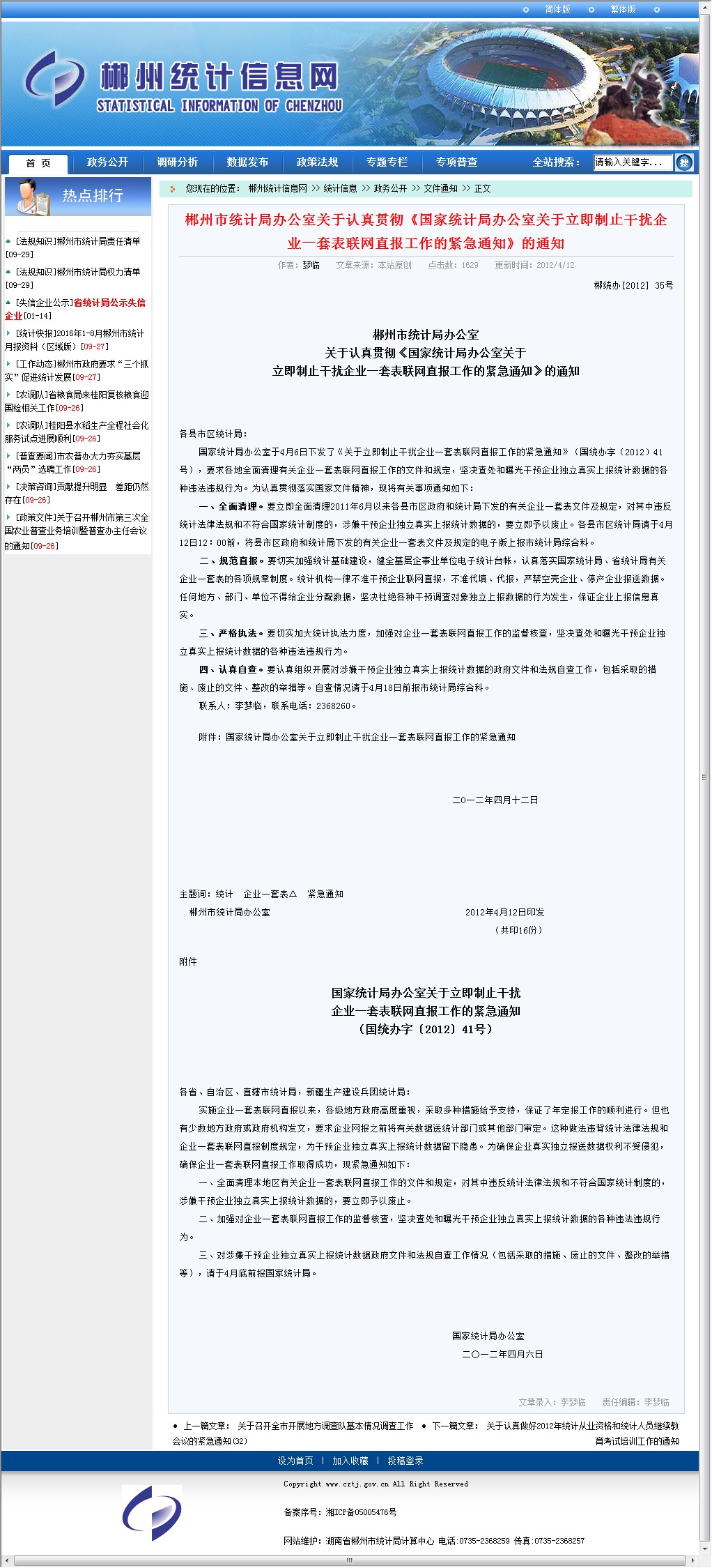 国家统计局办公室于4月6日下发了《关于立即制止干扰企业一套表联网直报工作的紧急通知》(国统办字〔2012〕41号),要求各地全面清理有关企业一套表联网直报工作的文件和规定,坚决查处和曝光干预企业独立真实上报统计数据的各种违法违规行为。为认真贯彻落实国家文件精神,现将有关事项通知如下: