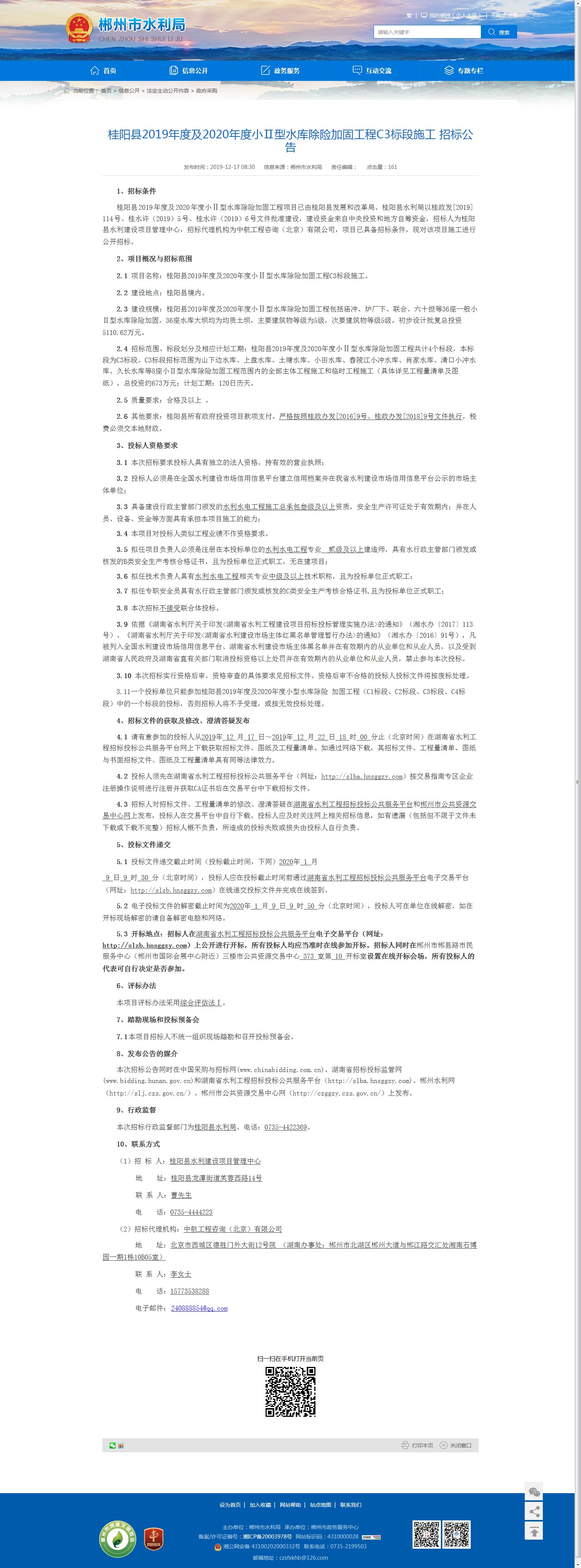 2.1 项目名称:桂阳县2019年度及2020年度小Ⅱ型水库除险加固工程C3标段施工。