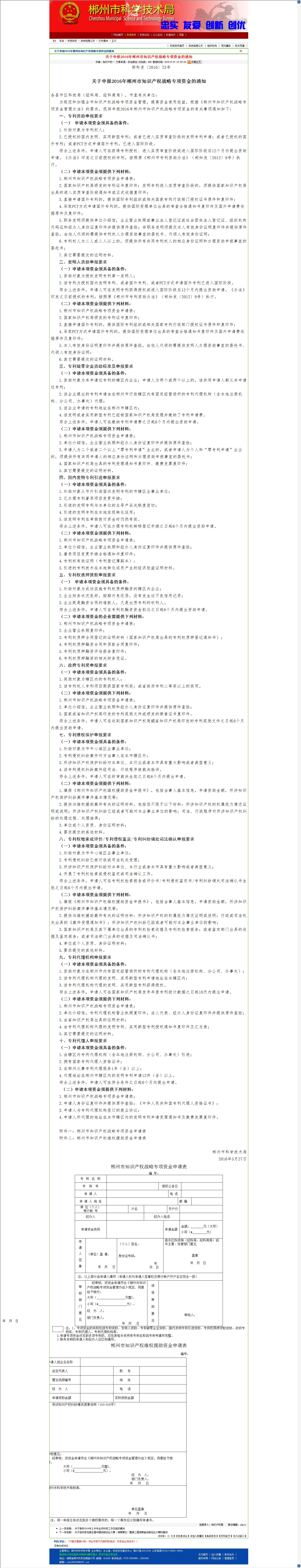 关于申报2016年郴州市知识产权战略专项资金的通知