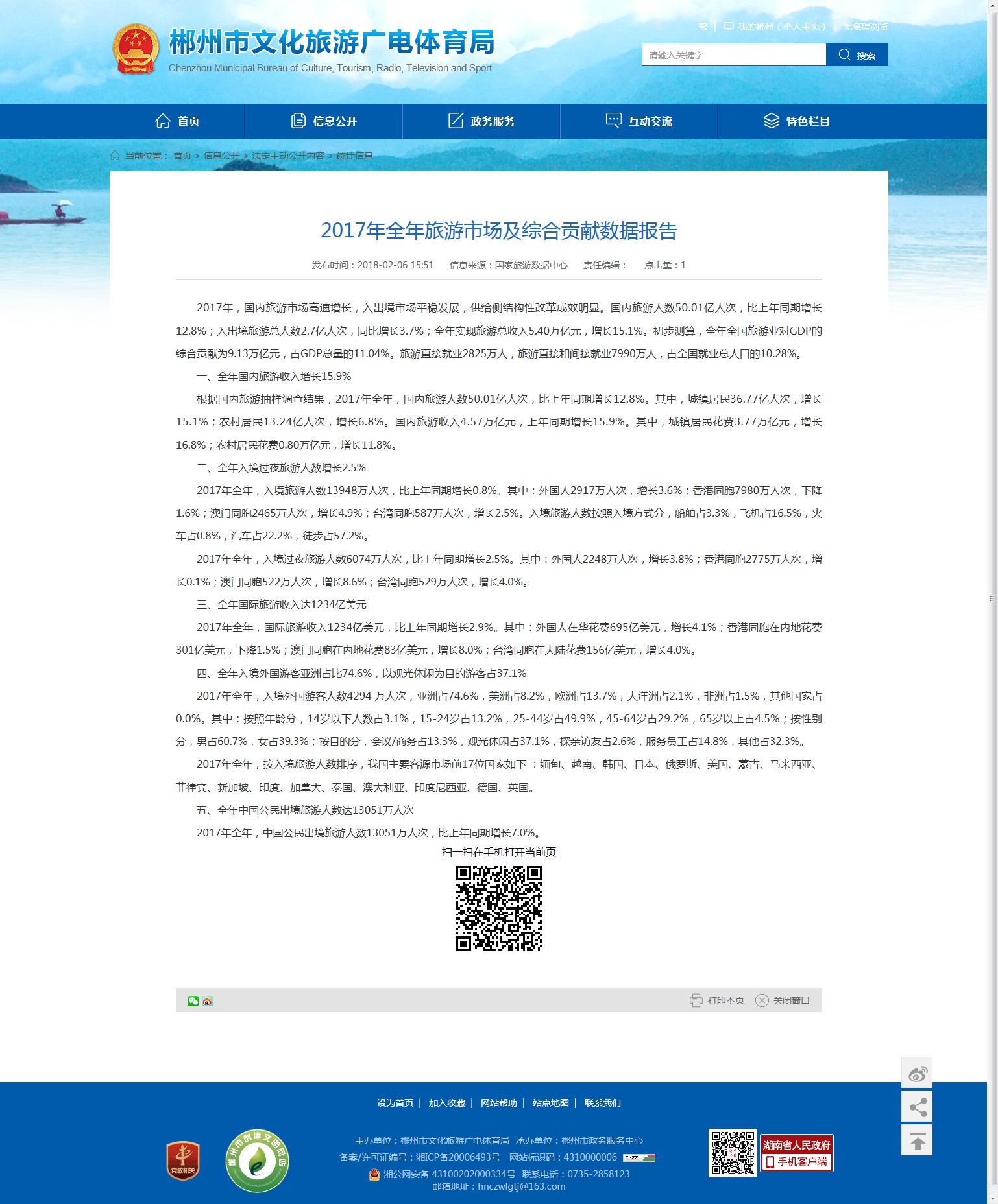 2017年,国内旅游市场高速增长,入出境市场平稳发展,供给侧结构性改革成效明显。国内旅游人数50.01亿人次,比上年同期增长12.8%;入出境旅游总人数2.7亿人次,同比增长3.7%;全年实现旅游总收入5.40万亿元,增长15.1%。初步测算,全年全国旅游业对GDP的综合贡献为9.13万亿元,占GDP总量的11.04%。旅游直接就业2825万人,旅游直接和间接就业7990万人,占全国就业总人口的10.28%。