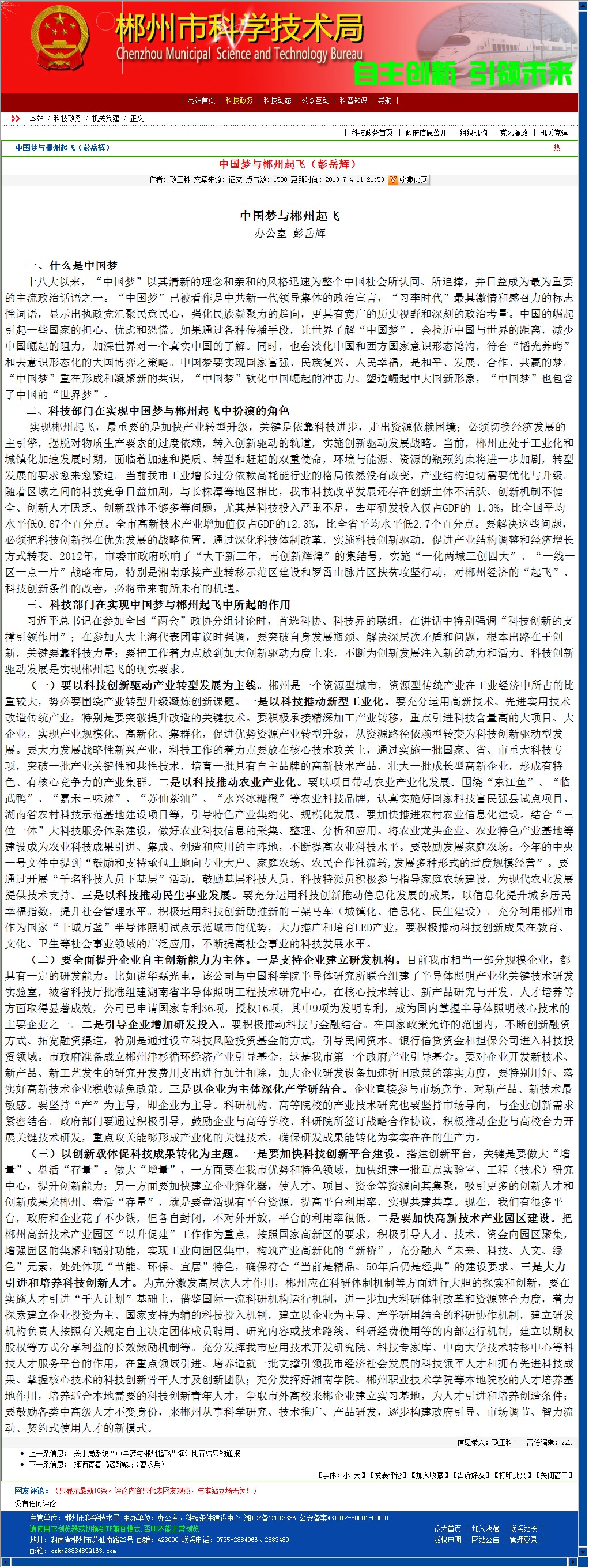 二、科技部门在实现中国梦与郴州起飞中扮演的角色
