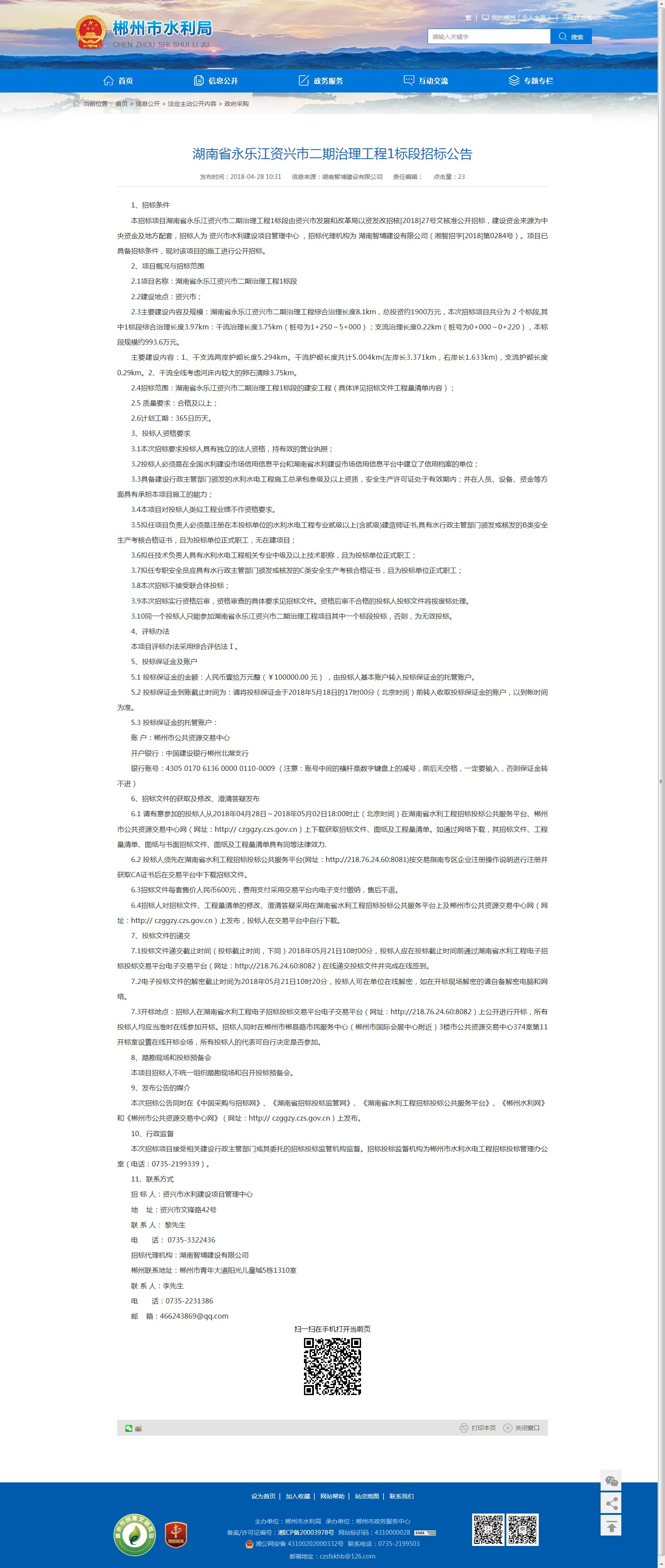 本次招标公告同时在《中国采购与招标网》、《湖南省招标投标监管网》、《湖南省水利工程招标投标公共服务平台》、《郴州水利网》和《郴州市公共资源交易中心网》(网址:http:// czggzy.czs.gov.cn)上发布。