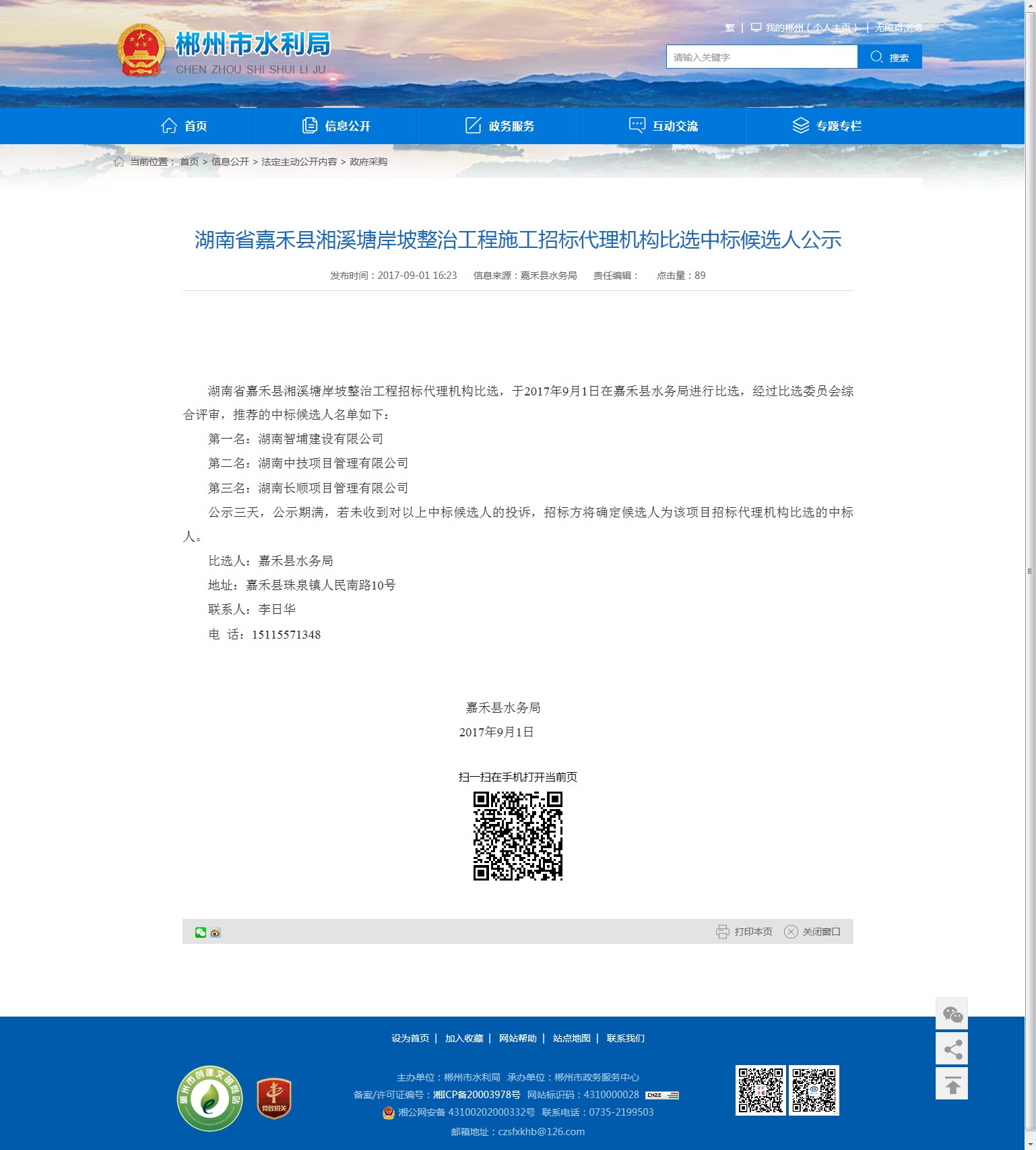 湖南省嘉禾县湘溪塘岸坡整治工程招标代理机构比选,于2017年9月1日在嘉禾县水务局进行比选,经过比选委员会综合评审,推荐的中标候选人名单如下: