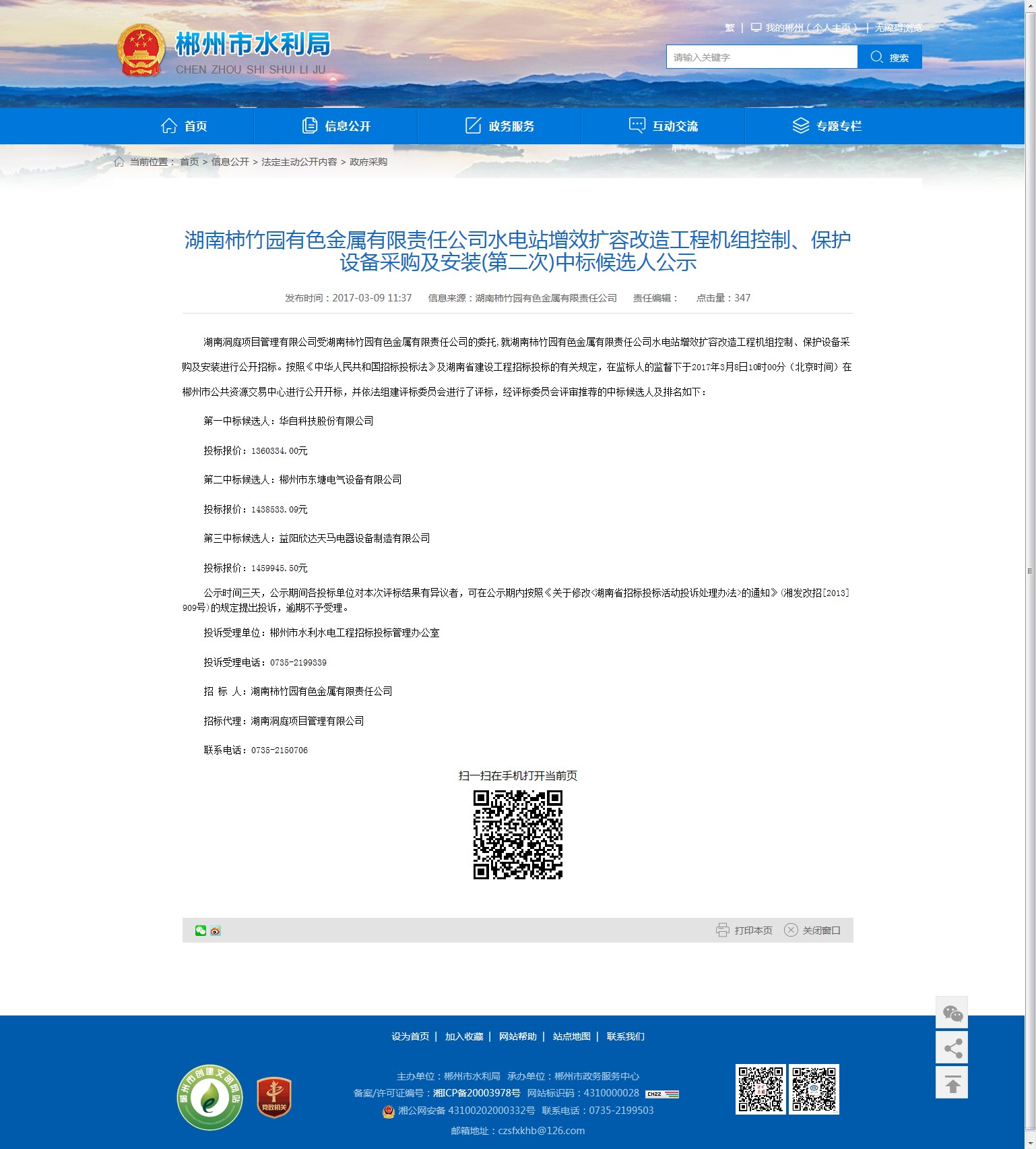 投诉受理单位:郴州市水利水电工程招标投标管理办公室