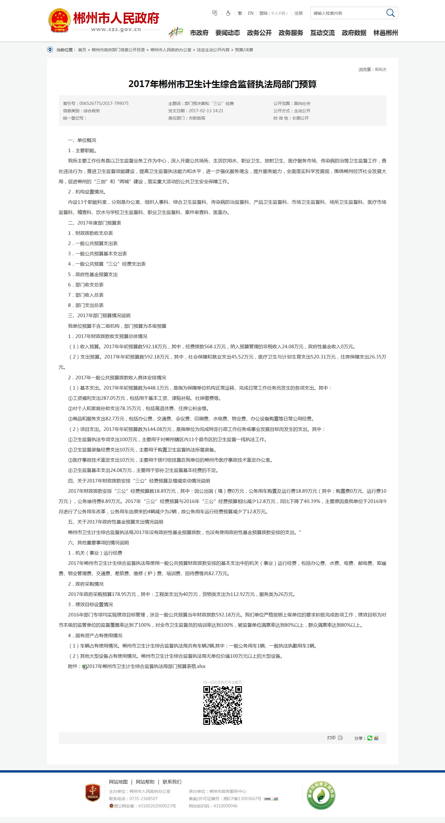 2017年郴州市卫生计生综合监督执法局部门预算表格.xlsx