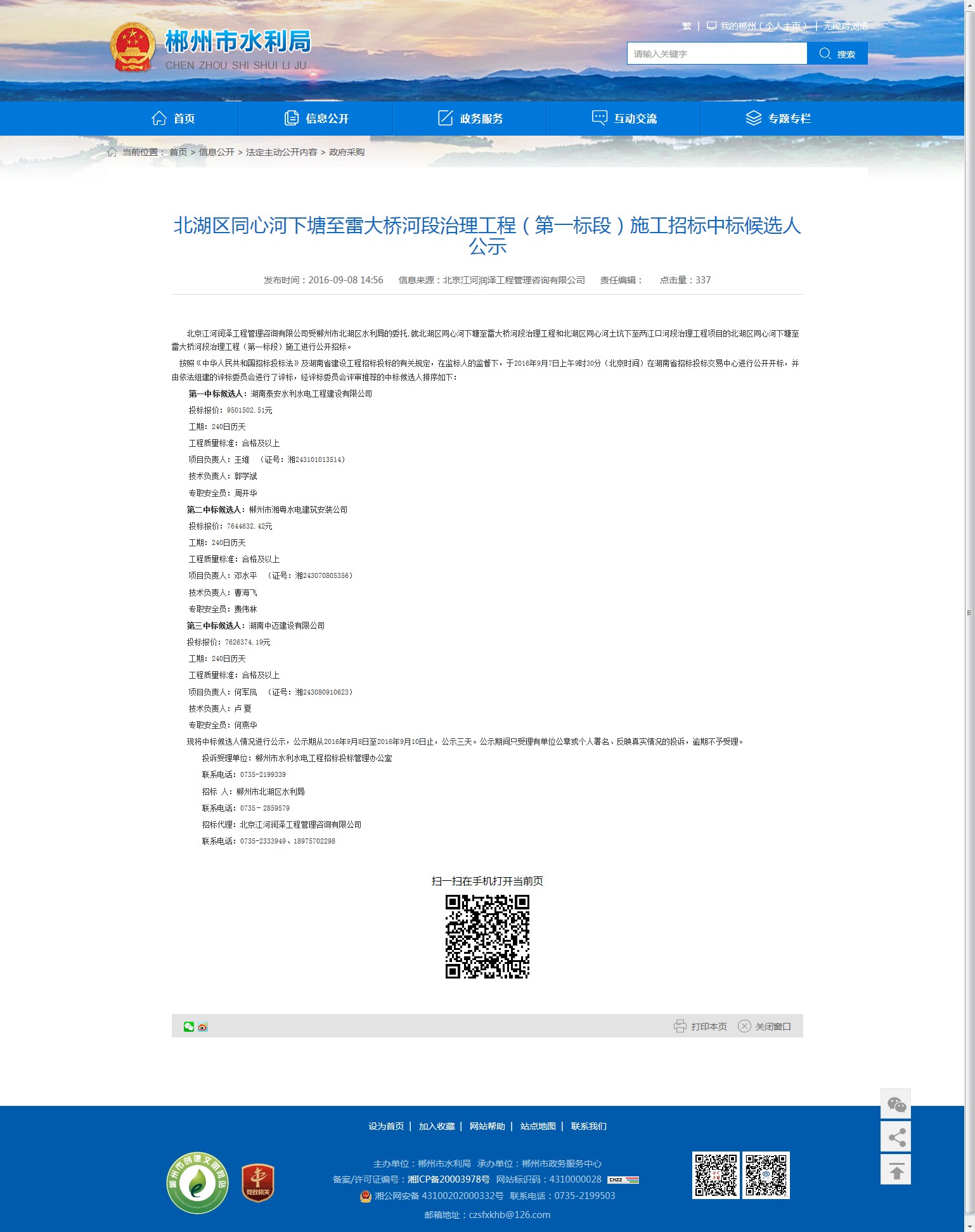 投诉受理单位:郴州市水利水电工程招标投标管理办公室