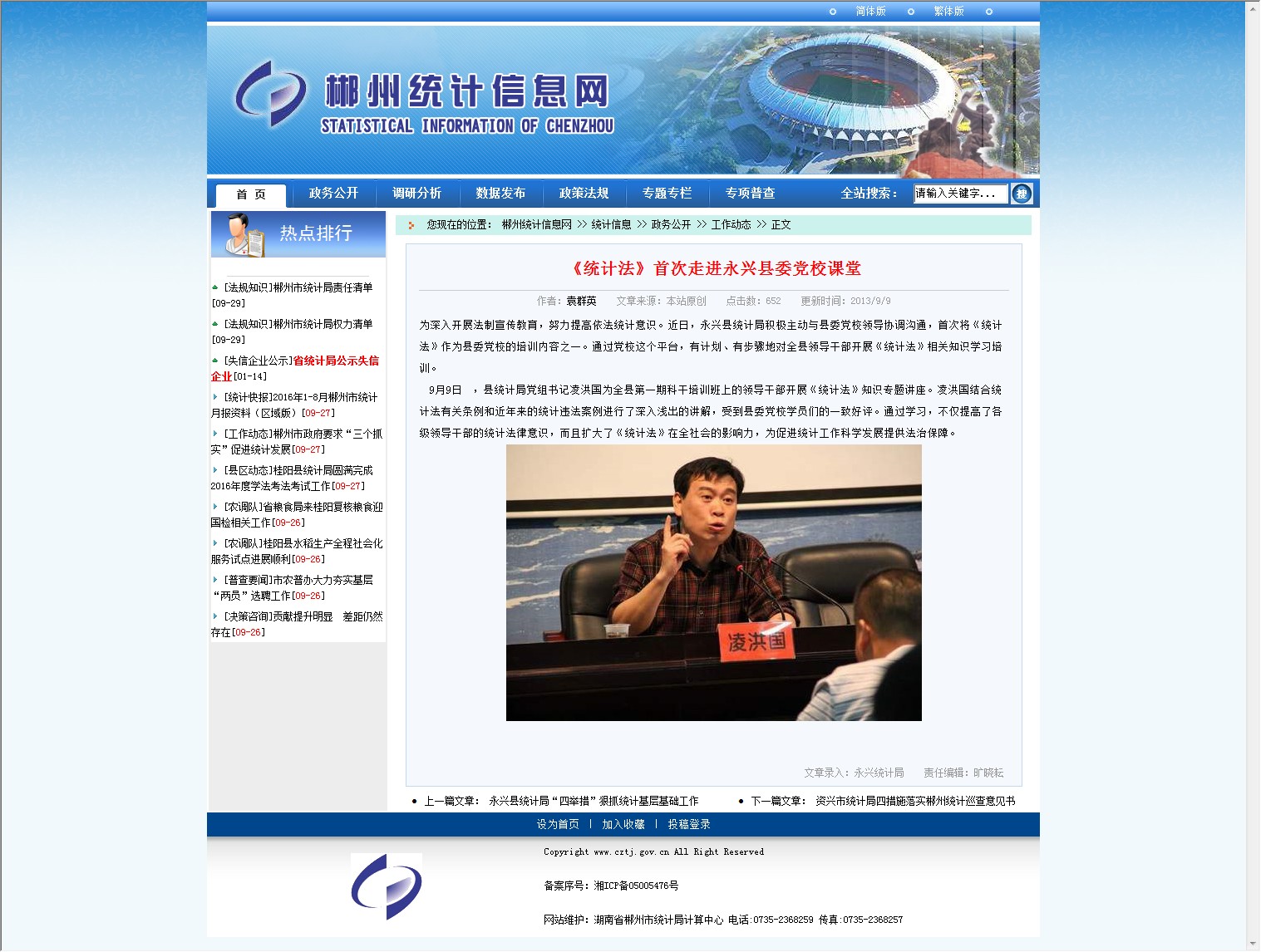为深入开展法制宣传教育,努力提高依法统计意识。近日,永兴县统计局积极主动与县委党校领导协调沟通,首次将《统计法》作为县委党校的培训内容之一。通过党校这个平台,有计划、有步骤地对全县领导干部开展《统计法》相关知识学习培训。