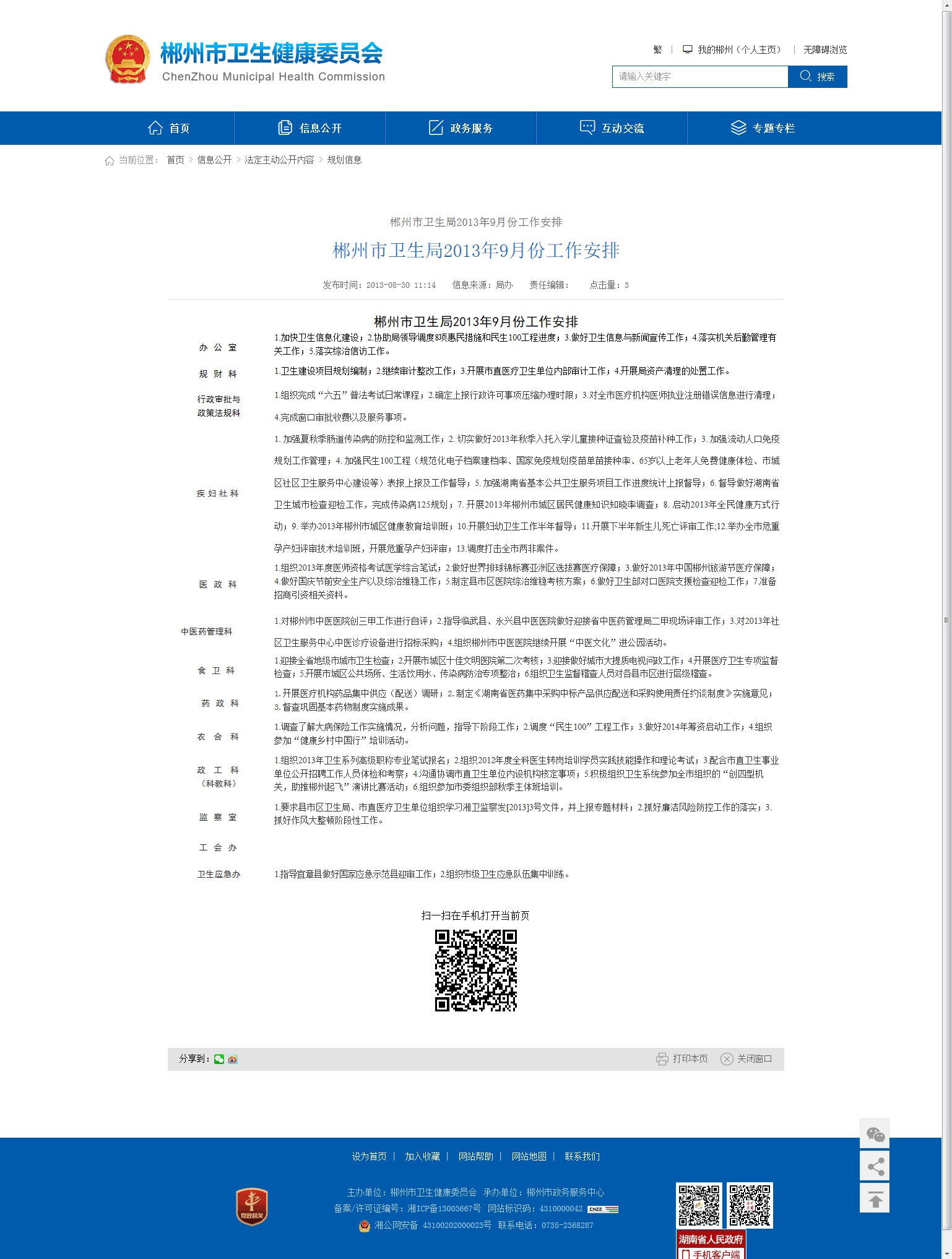 1. 加强夏秋季肠道传染病的防控和监测工作;2. 切实做好2013年秋季入托入学儿童接种证查验及疫苗补种工作;3. 加强流动人口免疫规划工作管理;4. 加强民生100工程(规范化电子档案建档率、国家免疫规划疫苗单苗接种率、65岁以上老年人免费健康体检、市城区社区卫生服务中心建设等)表报上报及工作督导;5. 加强湖南省基本公共卫生服务项目工作进度统计上报督导;6. 督导做好湖南省卫生城市检查迎检工作,完成传染病125规划;7. 开展2013年郴州市城区居民健康知识知晓率调查;8. 启动2013年全民健康方式行动;9. 举办2013年郴州市城区健康教育培训班;10.开展妇幼卫生工作半年督导;11.开展下半年新生儿死亡评审工作;12.举办全市危重孕产妇评审技术培训班,开展危重孕产妇评审;13.调度打击全市两非案件。 |