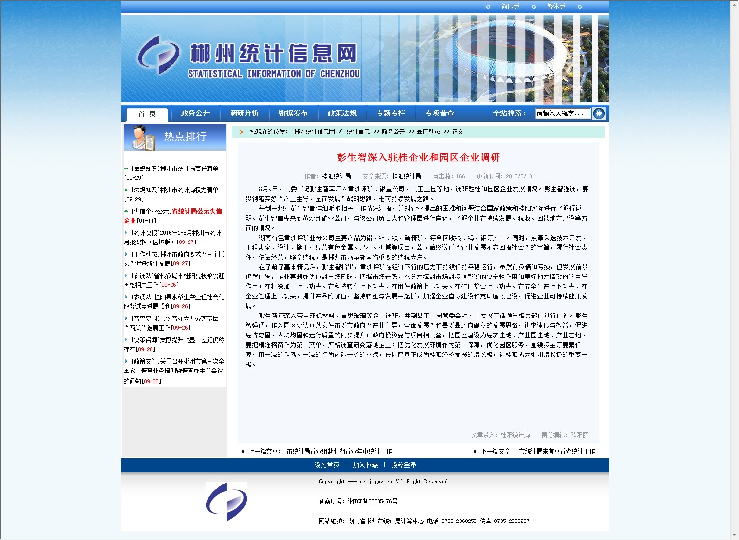 8月9日,县委书记彭生智率深入黄沙坪矿、银星公司、县工业园等地,调研驻桂和园区企业发展情况。彭生智强调,要贯彻落实好“产业主导、全面发展”战略思路,走可持续发展之路。