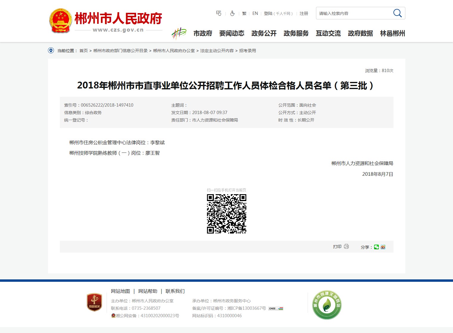 郴州市住房公积金管理中心法律岗位:李黎斌