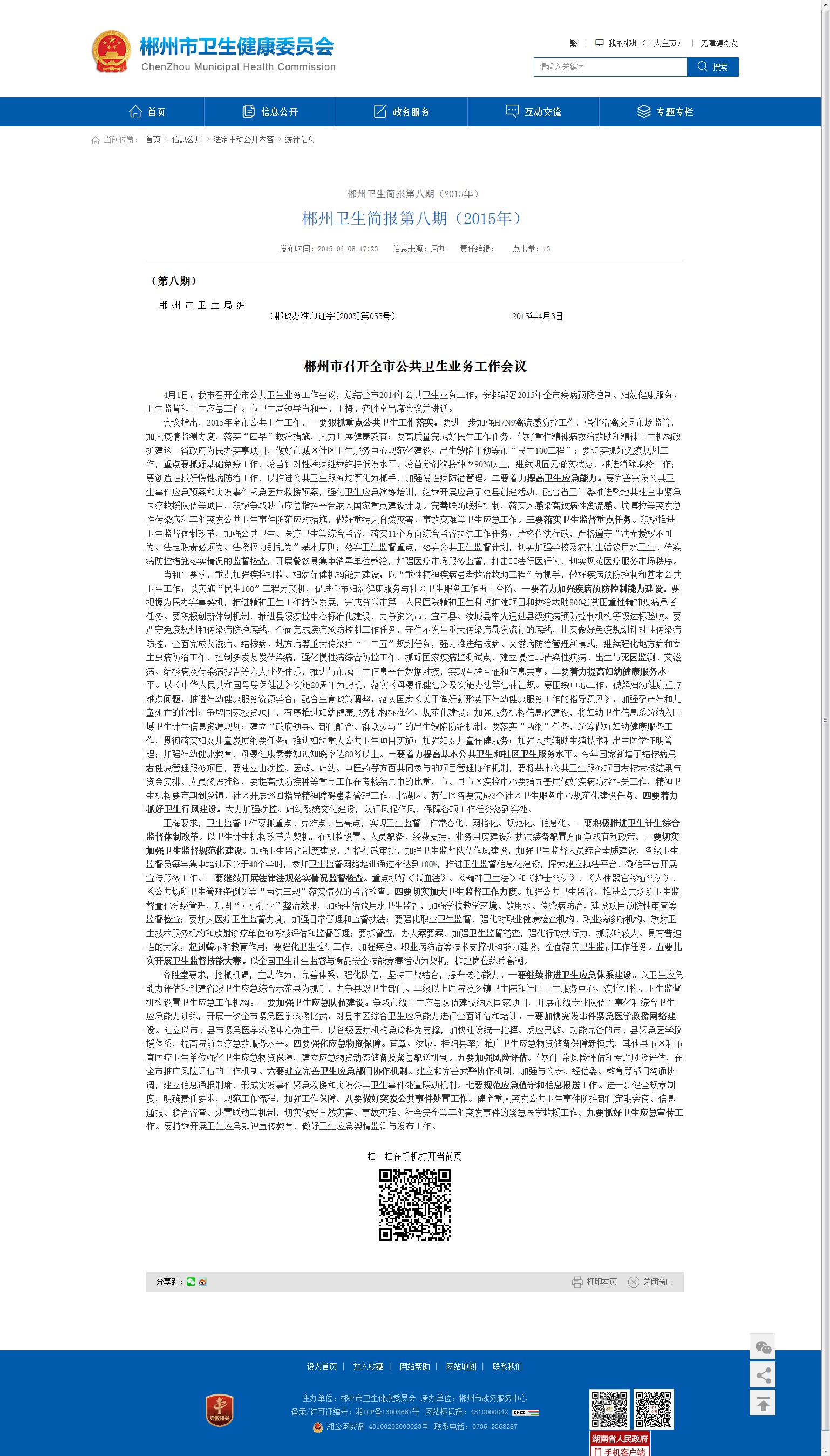会议指出,2015年全市公共卫生工作,一要狠抓重点公共卫生工作落实。要进一步加强H7N9禽流感防控工作,强化活禽交易市场监管,加大疫情监测力度,落实“四早”救治措施,大力开展健康教育;要高质量完成好民生工作任务,做好重性精神病救治救助和精神卫生机构改扩建这一省政府为民办实事项目,做好市城区社区卫生服务中心规范化建设、出生缺陷干预等市“民生100工程”;要切实抓好免疫规划工作,重点要抓好基础免疫工作,疫苗针对性疾病继续维持低发水平,疫苗分剂次接种率90%以上,继续巩固无脊灰状态,推进消除麻疹工作;要创造性抓好慢性病防治工作,以推进公共卫生服务均等化为抓手,加强慢性病防治管理。二要着力提高卫生应急能力。要完善突发公共卫生事件应急预案和突发事件紧急医疗救援预案,强化卫生应急演练培训,继续开展应急示范县创建活动,配合省卫计委推进警地共建空中紧急医疗救援队伍等项目,积极争取我市应急指挥平台纳入国家重点建设计划。完善联防联控机制,落实人感染高致病性禽流感、埃博拉等突发急性传染病和其他突发公共卫生事件防范应对措施,做好重特大自然灾害、事故灾难等卫生应急工作。三要落实卫生监督重点任务。积极推进卫生监督体制改革,加强公共卫生、医疗卫生等综合监督,落实11个方面综合监督执法工作任务;严格依法行政,严格遵守“法无授权不可为、法定职责必须为、法授权力别乱为”基本原则;落实卫生监督重点,落实公共卫生监督计划,切实加强学校及农村生活饮用水卫生、传染病防控措施落实情况的监督检查,开展餐饮具集中消毒单位整治,加强医疗市场服务监督,打击非法行医行为,切实规范医疗服务市场秩序。