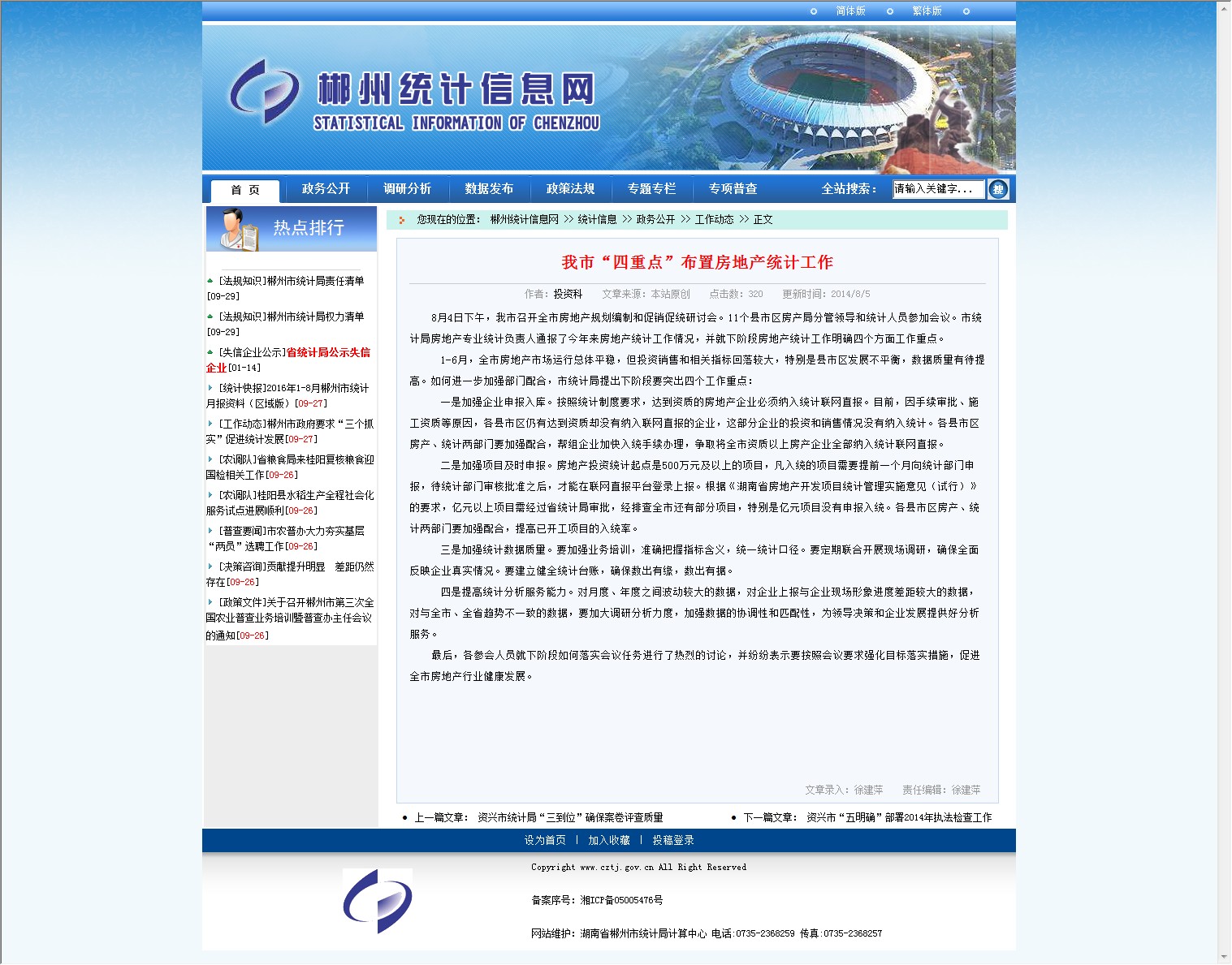 二是加强项目及时申报。房地产投资统计起点是500万元及以上的项目,凡入统的项目需要提前一个月向统计部门申报,待统计部门审核批准之后,才能在联网直报平台登录上报。根据《湖南省房地产开发项目统计管理实施意见(试行)》的要求,亿元以上项目需经过省统计局审批,经排查全市还有部分项目,特别是亿元项目没有申报入统。各县市区房产、统计两部门要加强配合,提高已开工项目的入统率。