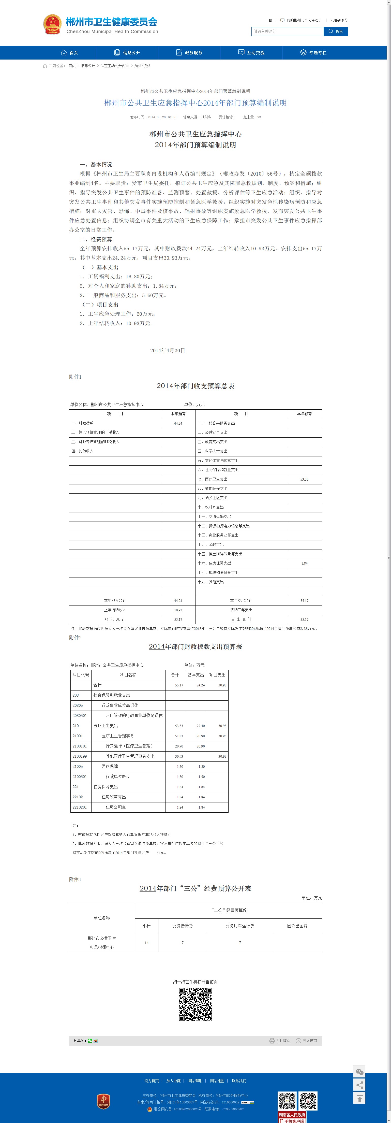 单位名称:郴州市公共卫生应急指挥中心 单位:万元