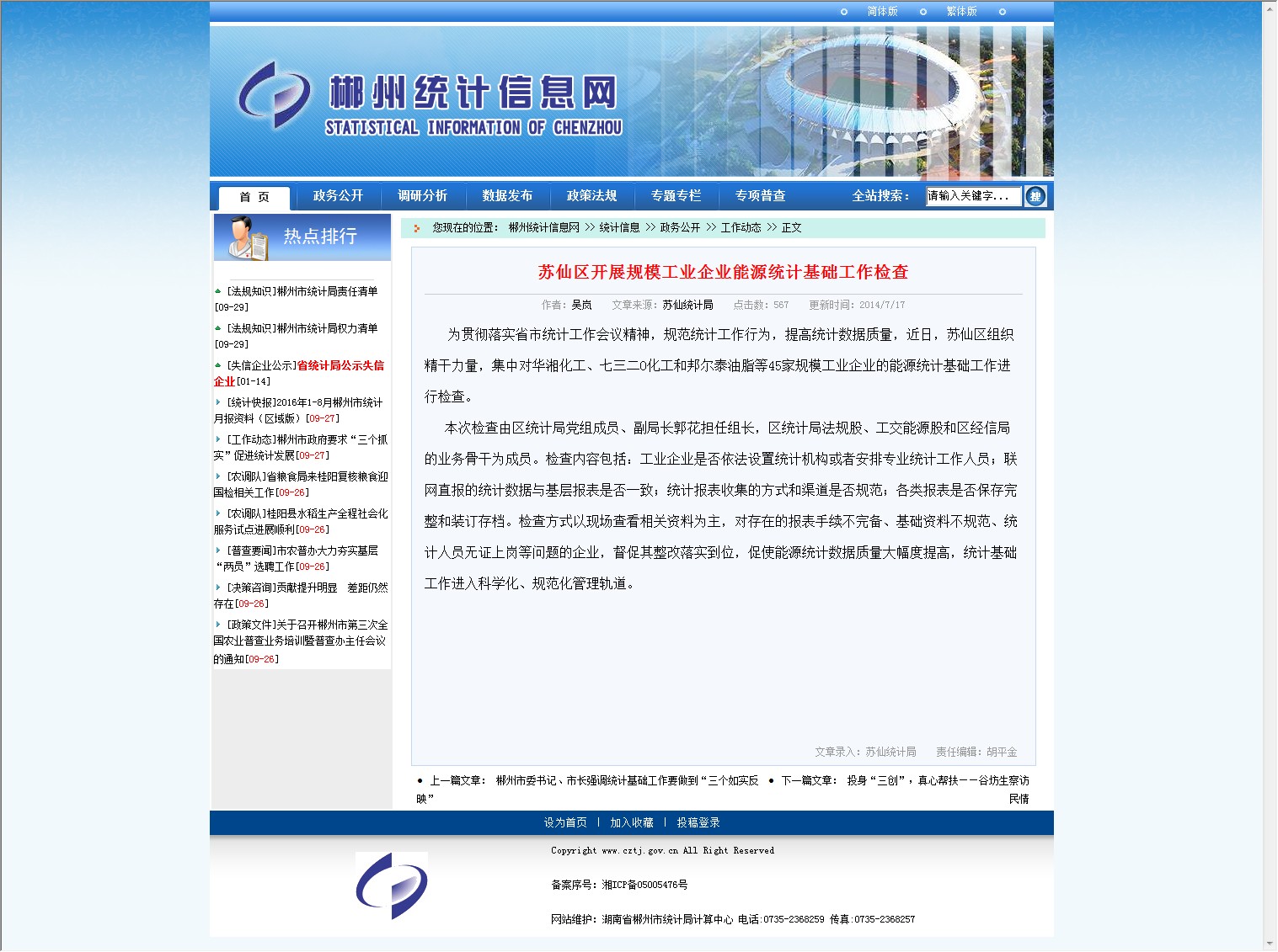 为贯彻落实省市统计工作会议精神,规范统计工作行为,提高统计数据质量,近日,苏仙区组织精干力量,集中对华湘化工、七三二O化工和邦尔泰油脂等45家规模工业企业的能源统计基础工作进行检查。