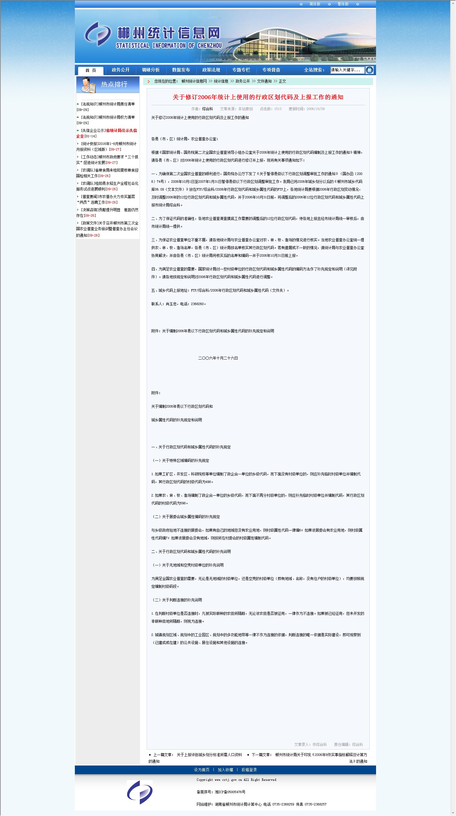 根据《国家统计局、国务院第二次全国农业普查领导小组办公室关于2006年统计上使用的行政区划代码编制及上报工作的通知》精神,请各县(市、区)对2006年统计上使用的行政区划代码进行修订并上报,现将有关事项通知如下: