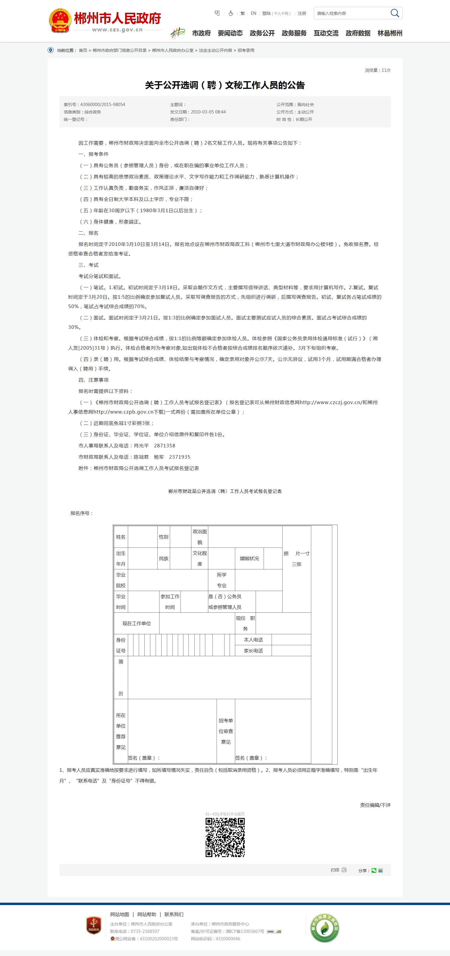 市人事局联系人及电话:肖光平 2871358
