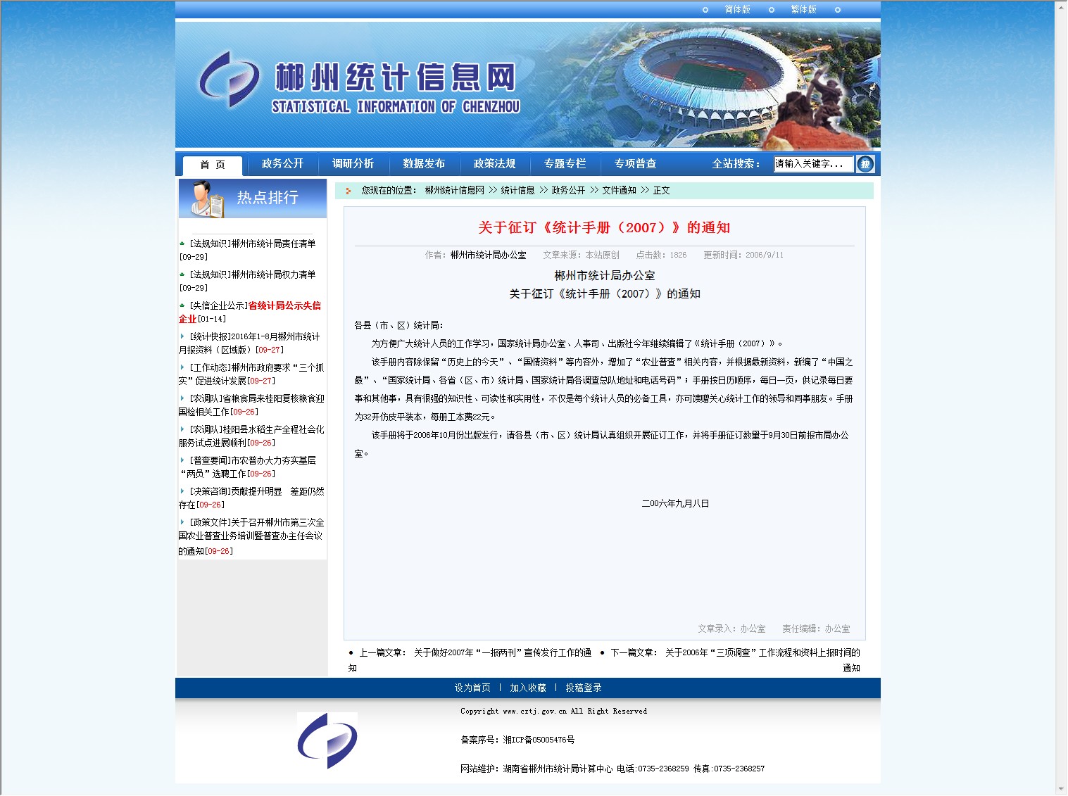 该手册将于2006年10月份出版发行,请各县(市、区)统计局认真组织开展征订工作,并将手册征订数量于9月30日前报市局办公室。