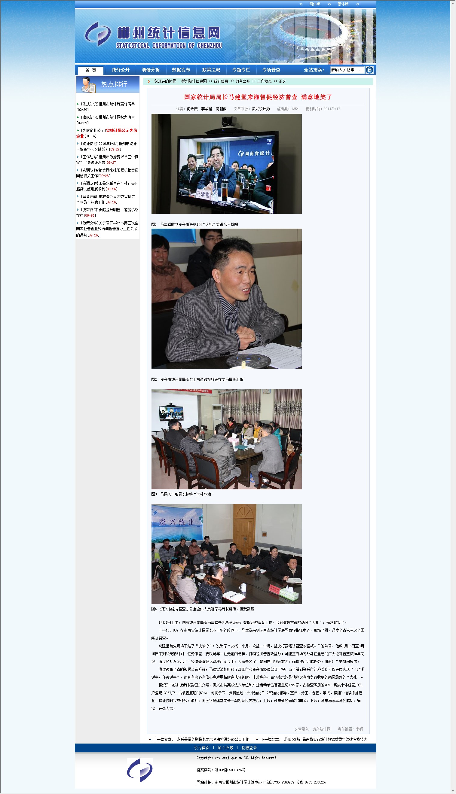 2月15日上午,国家统计局局长马建堂来湘考察调研,督促经济普查工作,收到资兴市送的两份“大礼”,满意地笑了。