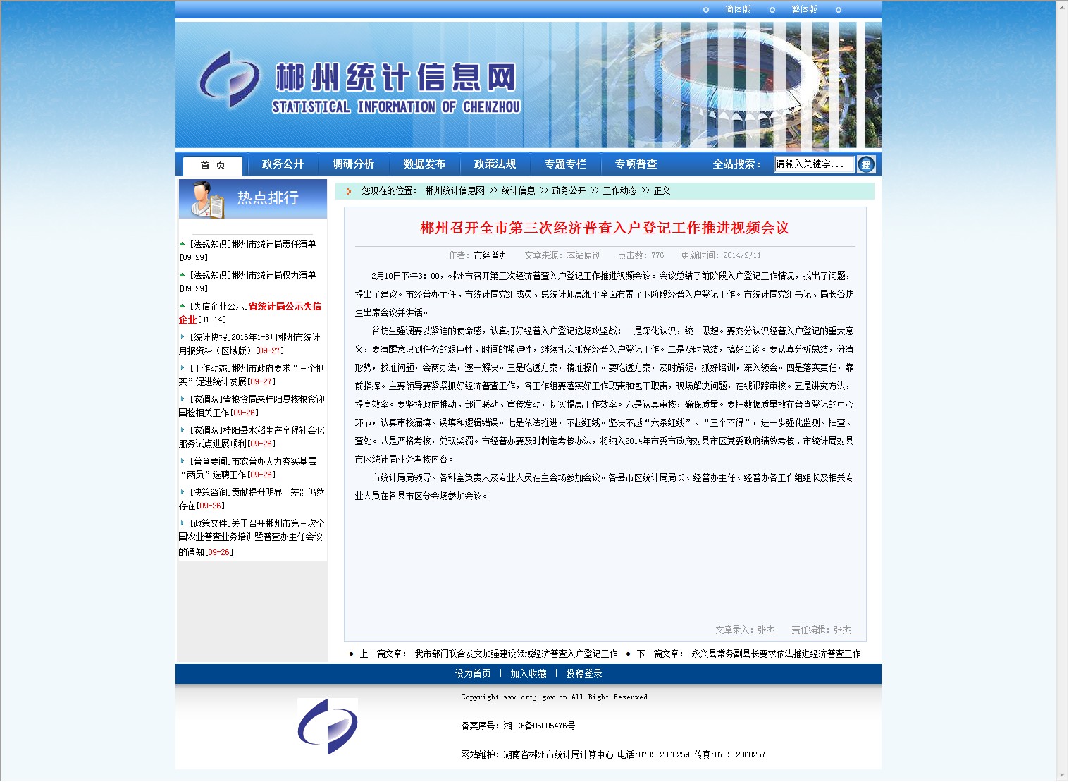 2月10日下午3:00,郴州市召开第三次经济普查入户登记工作推进视频会议。会议总结了前阶段入户登记工作情况,找出了问题,提出了建议。市经普办主任、市统计局党组成员、总统计师高湘平全面布置了下阶段经普入户登记工作。市统计局党组书记、局长谷坊生出席会议并讲话。