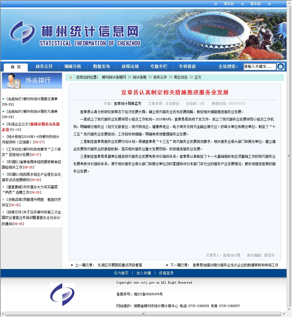 宜章县认真分析研究新常态下经济发展大局,确立现代服务业优先发展战略,制定相关措施推进服务业发展。