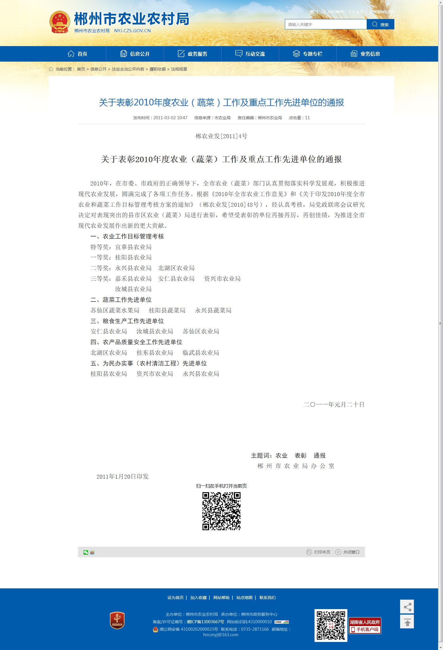 三等奖:嘉禾县农业局 安仁县农业局 资兴市农业局