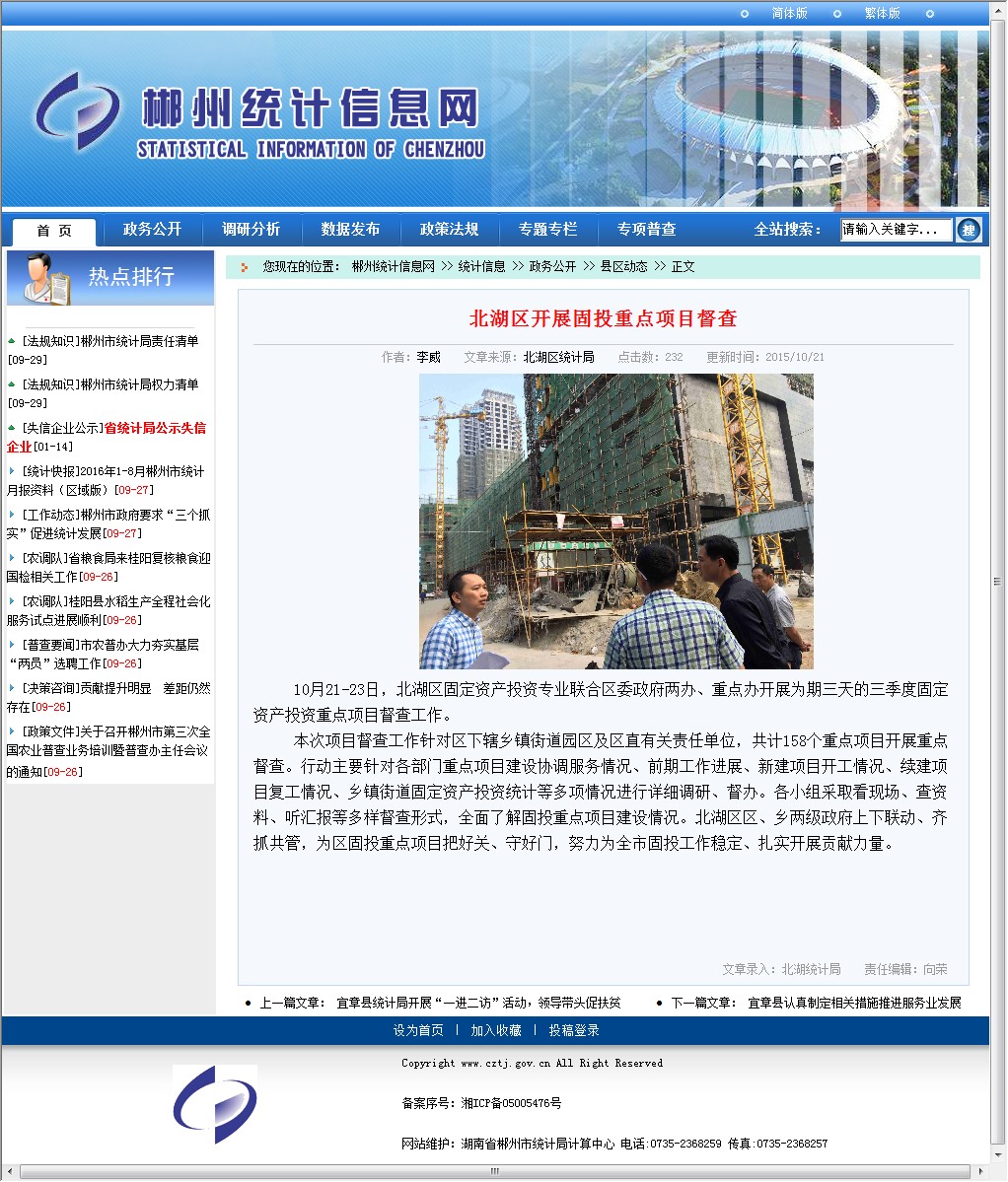 10月21-23日,北湖区固定资产投资专业联合区委政府两办、重点办开展为期三天的三季度固定资产投资重点项目督查工作。