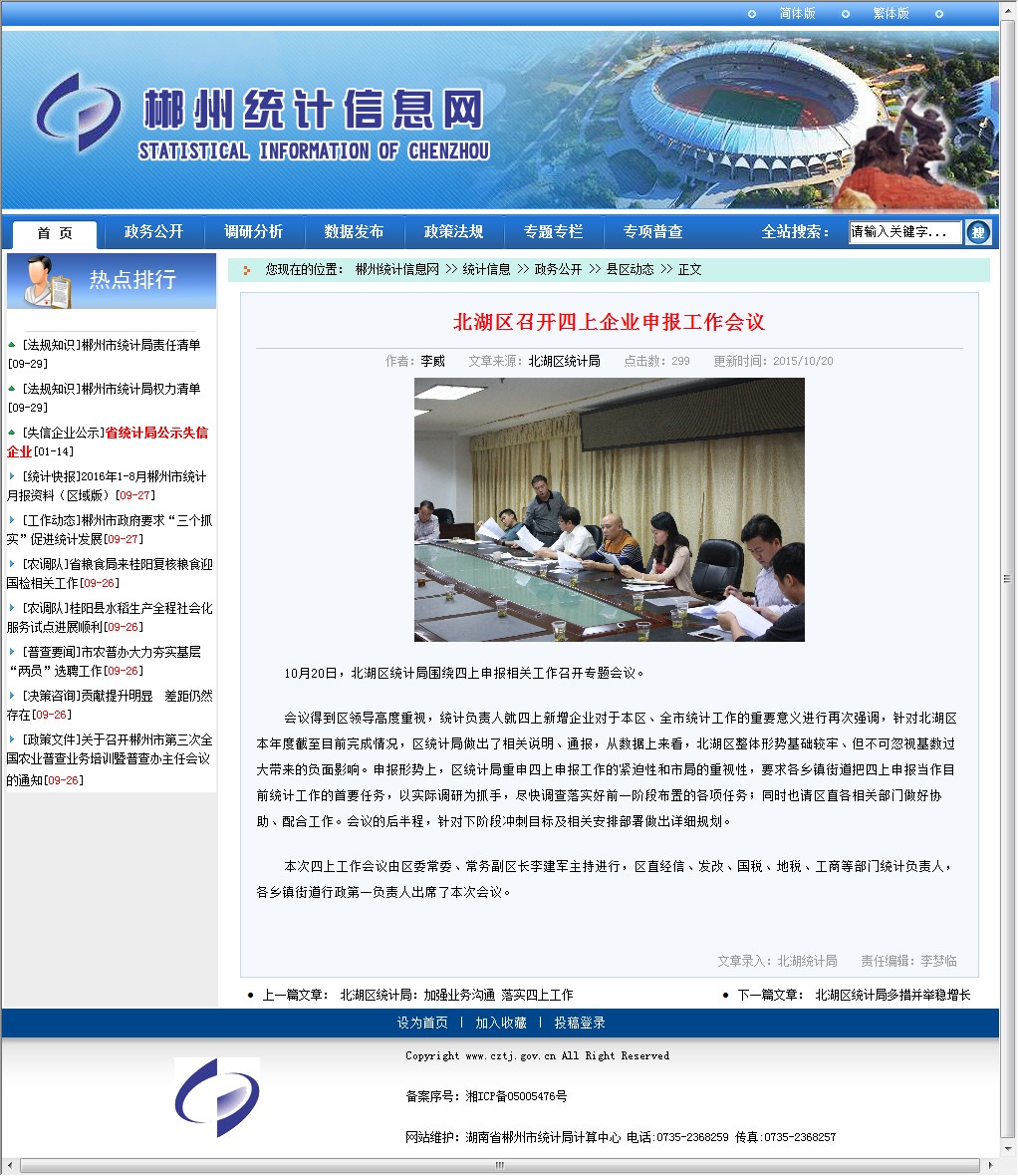 10月20日,北湖区统计局围绕四上申报相关工作召开专题会议。