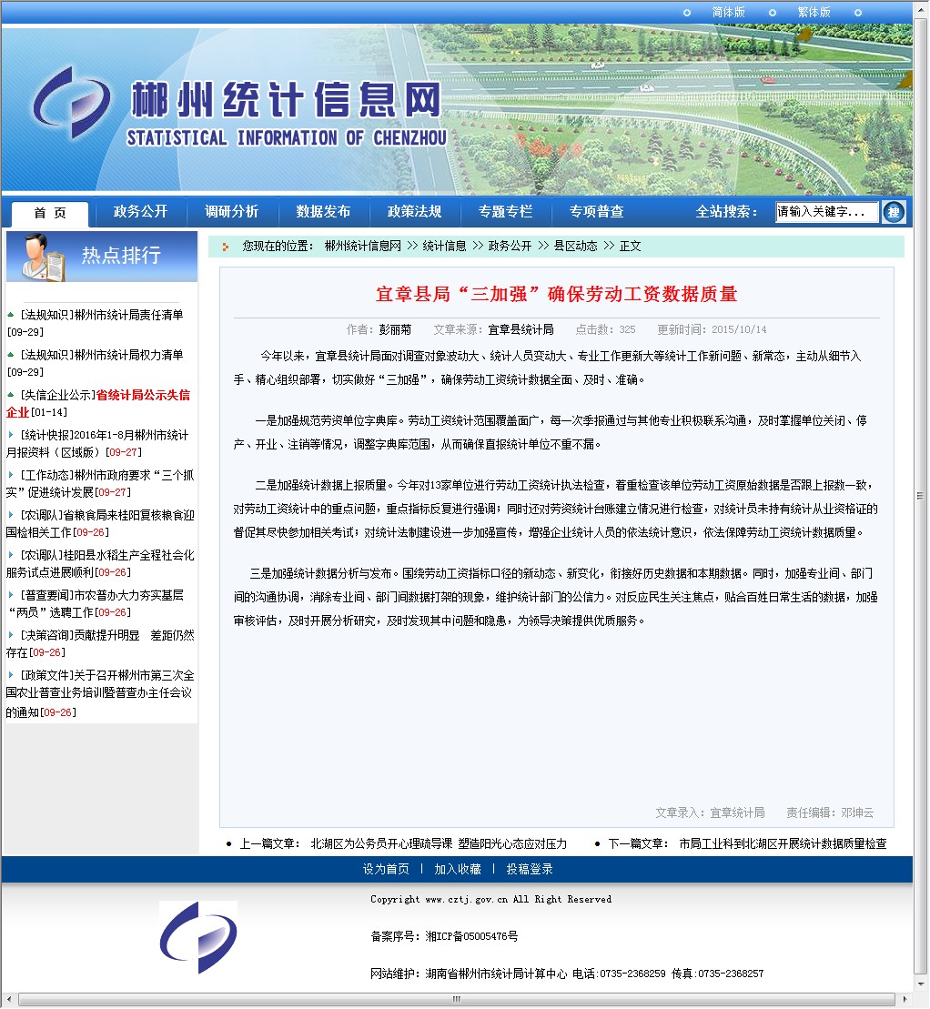 今年以来,宜章县统计局面对调查对象波动大、统计人员变动大、专业工作更新大等统计工作新问题、新常态,主动从细节入手、精心组织部署,切实做好“三加强”,确保劳动工资统计数据全面、及时、准确。