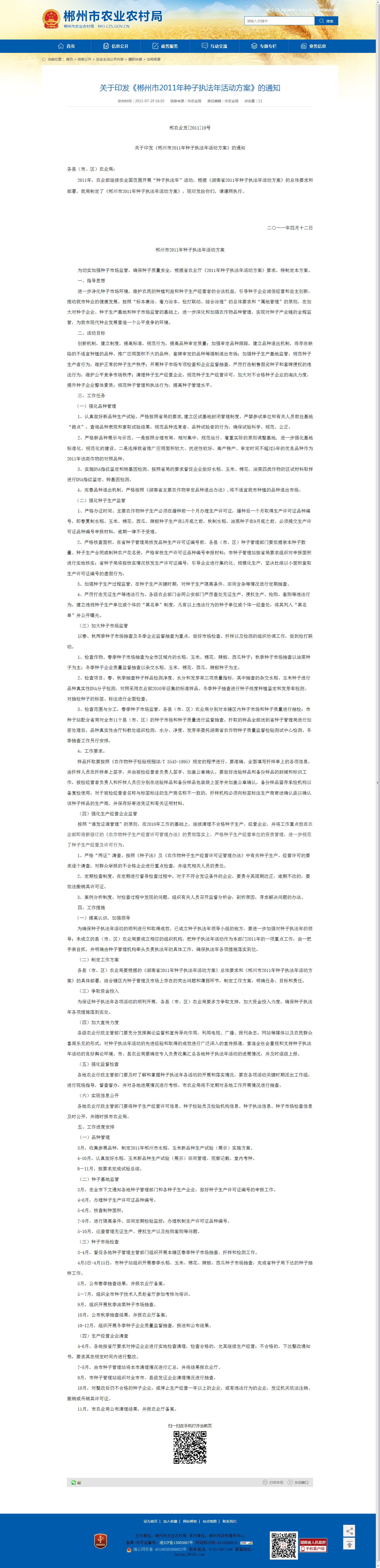 郴州市2011年种子执法年活动方案
