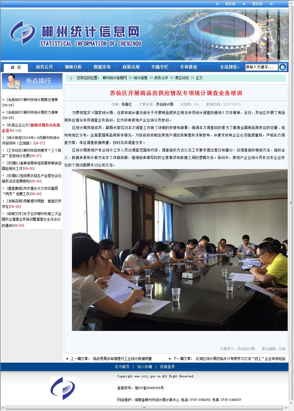 为贯彻落实《国家统计局、住房和城乡建设部关于开展商品房供应情况专项统计调查的通知》文件精神,近日,苏仙区开展了商品房供应情况专项调查业务培训,区内所有房地产企业统计员参训。