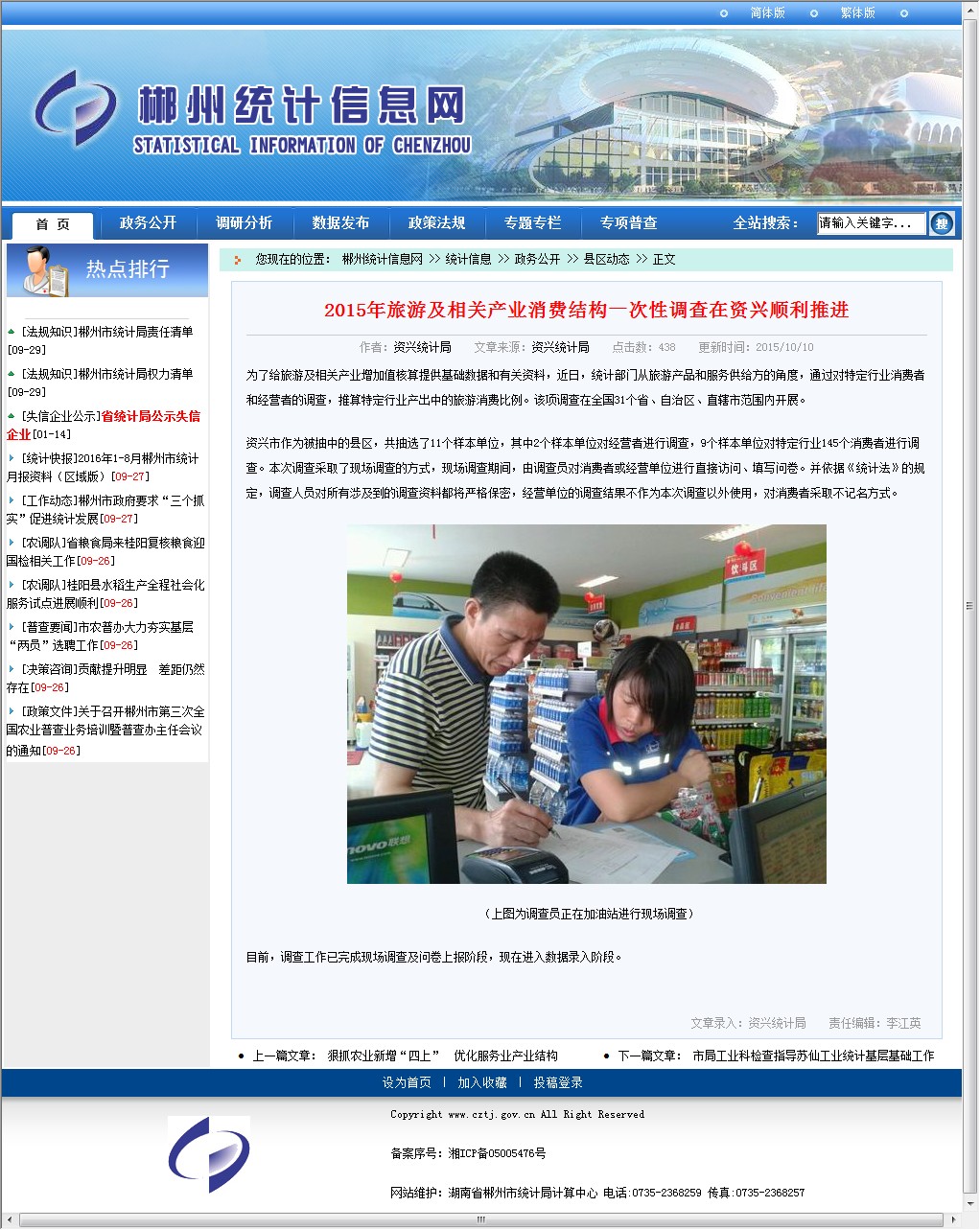 资兴市作为被抽中的县区,共抽选了11个样本单位,其中2个样本单位对经营者进行调查,9个样本单位对特定行业145个消费者进行调查。本次调查采取了现场调查的方式,现场调查期间,由调查员对消费者或经营单位进行直接访问、填写问卷。并依据《统计法》的规定,调查人员对所有涉及到的调查资料都将严格保密,经营单位的调查结果不作为本次调查以外使用,对消费者采取不记名方式。