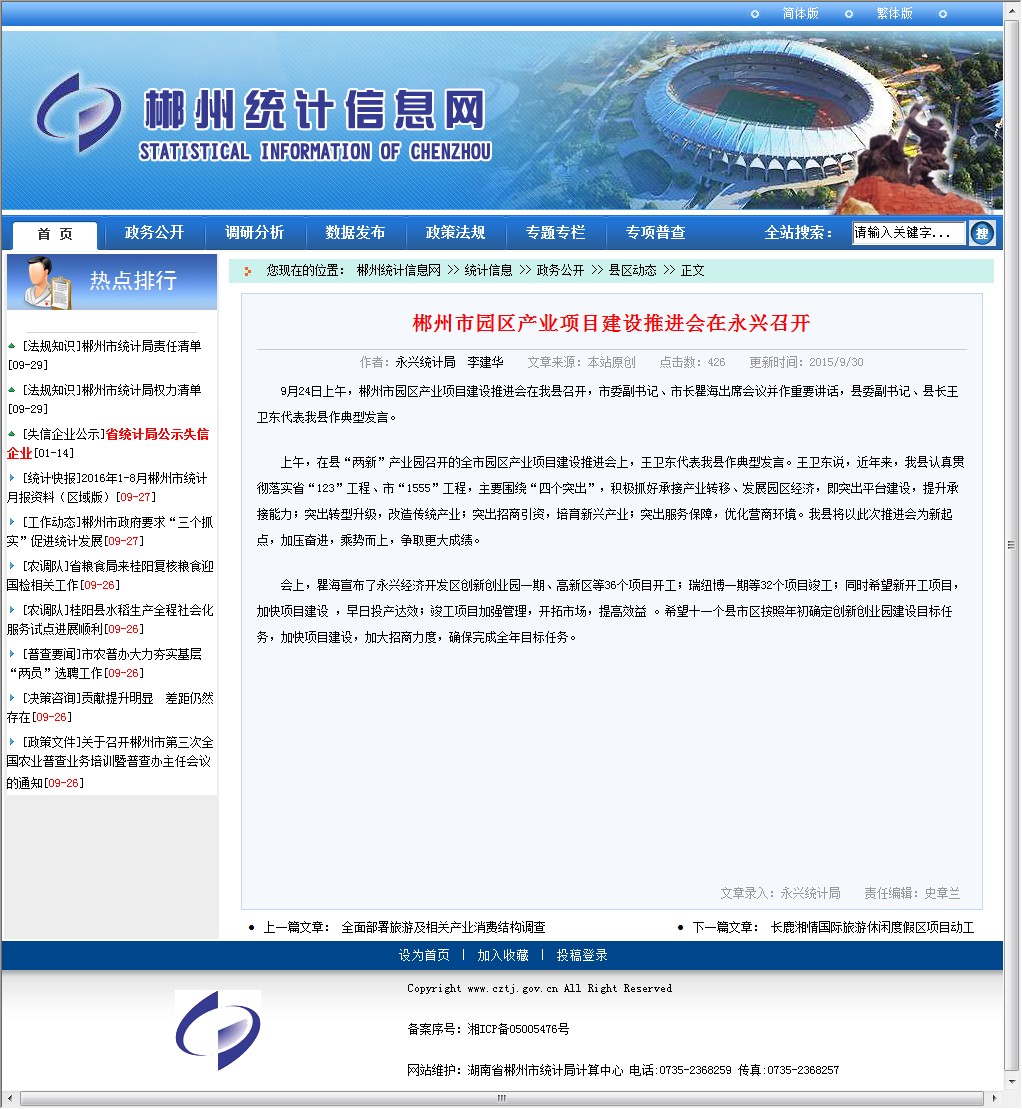 9月24日上午,郴州市园区产业项目建设推进会在我县召开,市委副书记、市长瞿海出席会议并作重要讲话,县委副书记、县长王卫东代表我县作典型发言。
