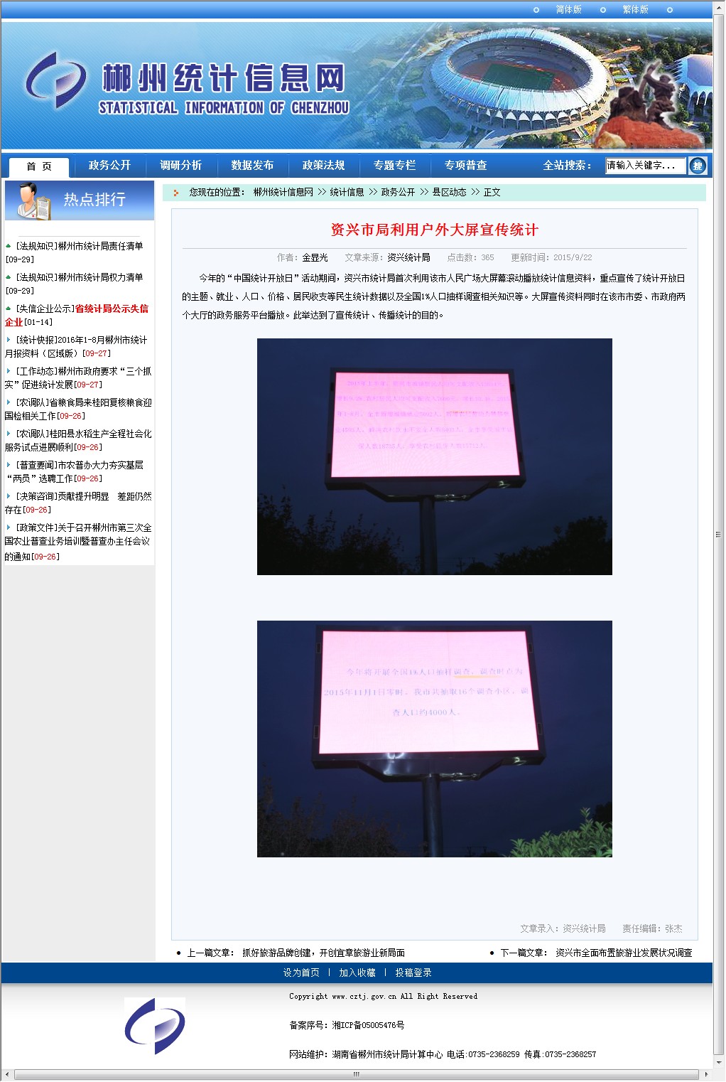 发文机构:郴州市统计局